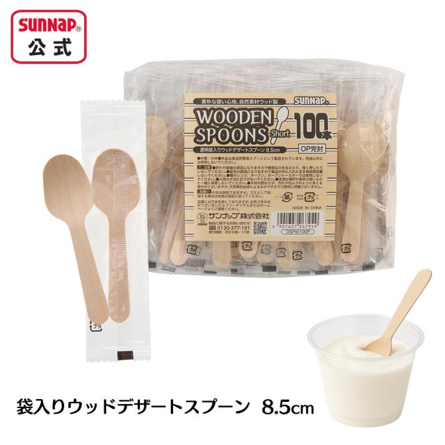 完封 デザートスプーン 100本 85mm【 スプーン 個包装 使い捨て 木製 透明袋入り ウッドデザートスプーン 】