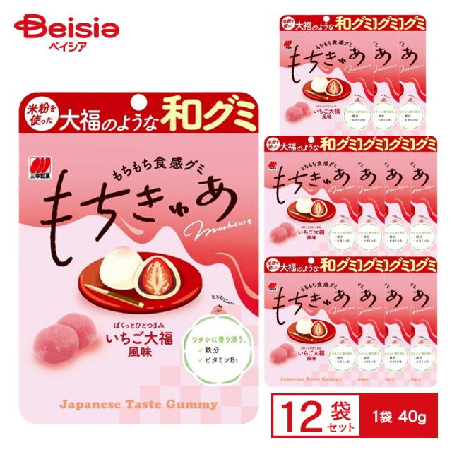 三幸製菓 もちきゅあ いちご大福風味 1袋(40g)×12袋 | グミ 和グミ 米粉 いちご大福風 あんこ もちもち食感 とろむにゃ 鉄分 ビタミン おやつ 間食 まとめ買い