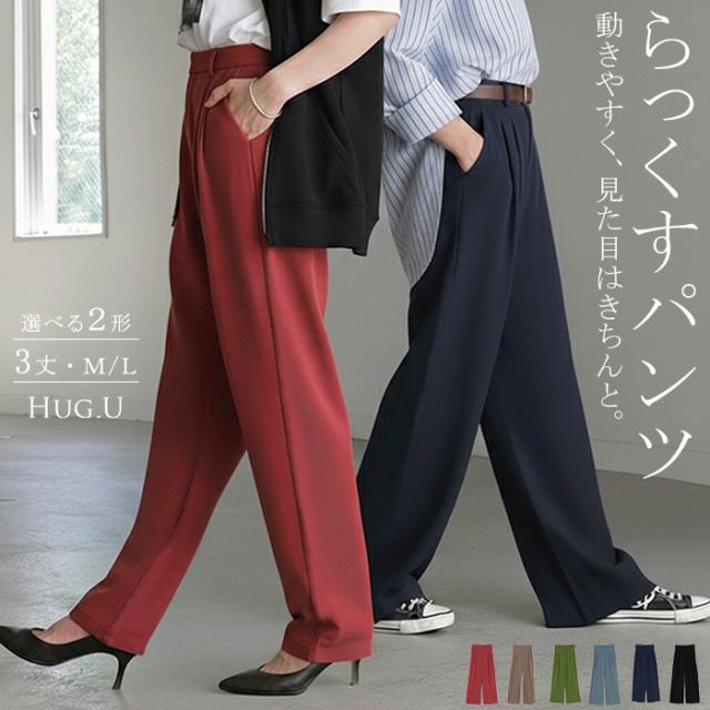 2025AW新作 パンツ 選べる シルエット 丈 レディース カラーパンツ テーパードパンツ ワイドパンツ ロング 低身長 ボトム 体型カバー ズボン ハイウエスト 大きいサイズ 通勤 春 夏 ネイビー 黒 きれいめ カジュアル HUG.U 秋新作