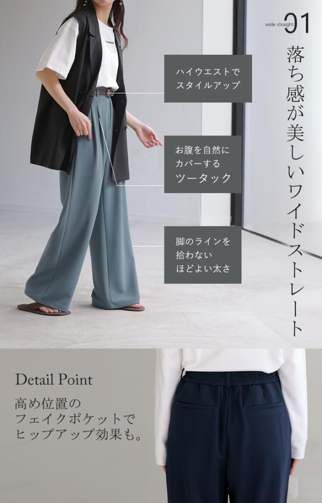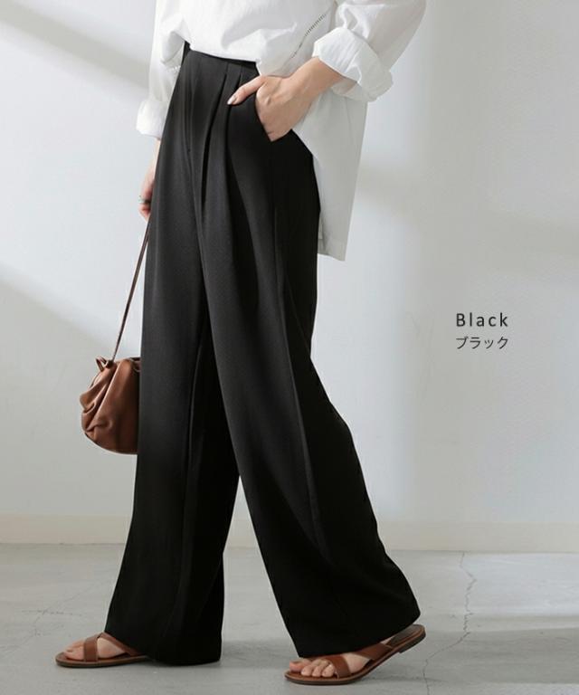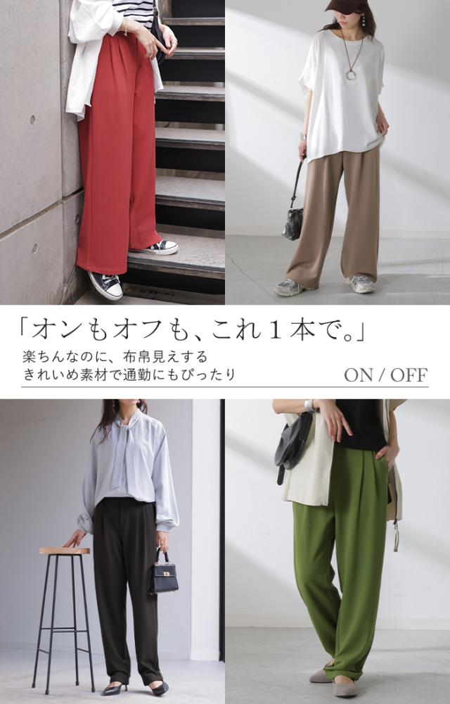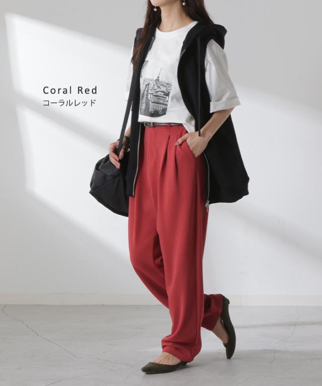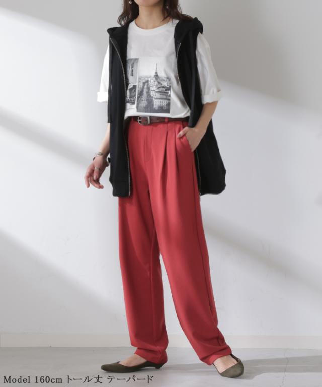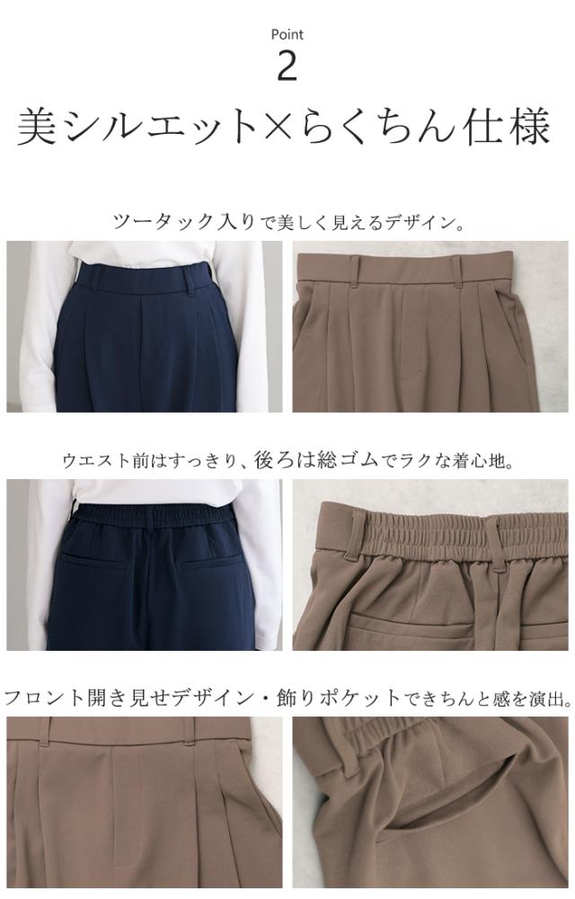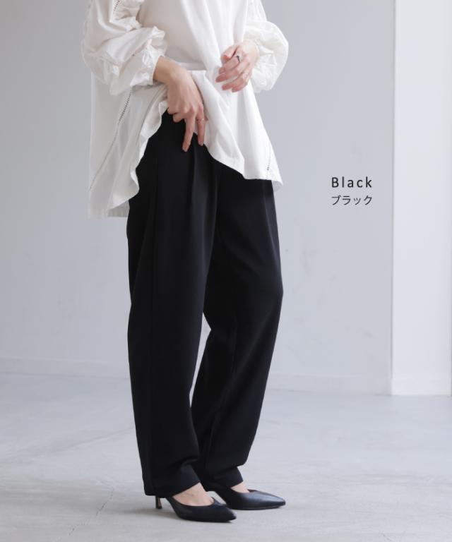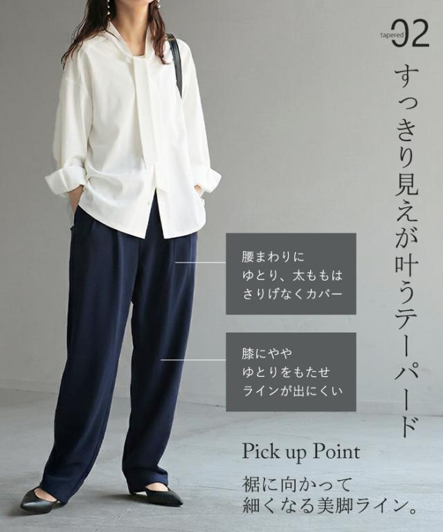 腰回りはゆったりとして足首にかけて細くなるシルエットは美脚が叶う一枚です。