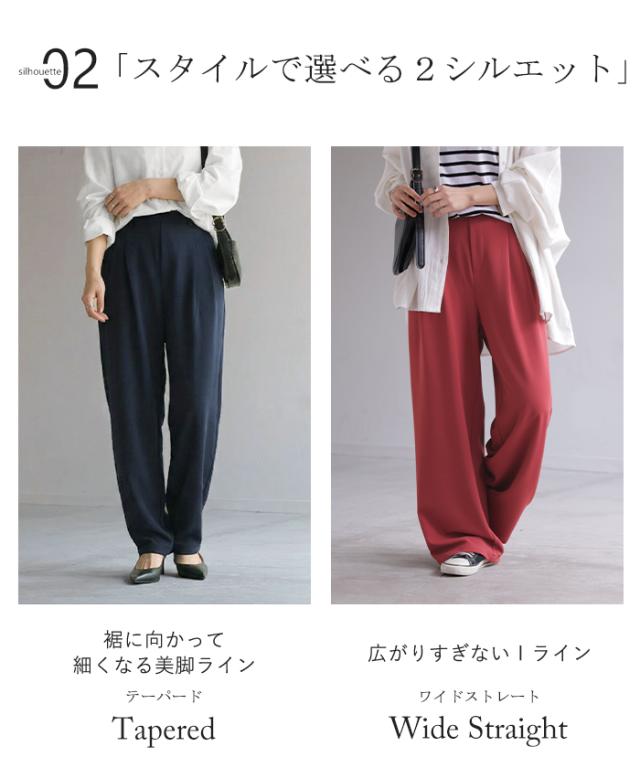 カラーパンツ テーパードパンツ テーパード スラックス ワイドパンツ ロング ロングパンツ ボトム 体型カバー ボトムス フレアパンツ ずぼん ストレッチ ズボン ハイウエスト ウエストゴム イージー イージー素材 リラックスパンツ リラックスボトム ワイドストレートパンツ 伸縮性 ポケット 軽い 軽量 柔らかい 柔らか しゃり感 シワになりにくい シワにならない アイロン不要 ツータック しぼ感 ネイビー 紺 緑 グリーン ブラウン 茶色 ブルー 青 ブラック 黒 カートジョーゼット 低身長 短い カジュアル 旬 トレンド 着回し シンプル 大人 大人カジュアル オトナ 女性 綺麗 きれい キレイめ 高見え 上質 上品 20代 30代 40代 50代 60代 おしゃれ お洒落 オシャレ 春 夏 秋 冬 春夏 秋冬 HUG.U HUGU ハグユー はぐゆー 体型カバー ストレッチ ズボン ハイウエスト ウエストゴム 大きいサイズ 通勤