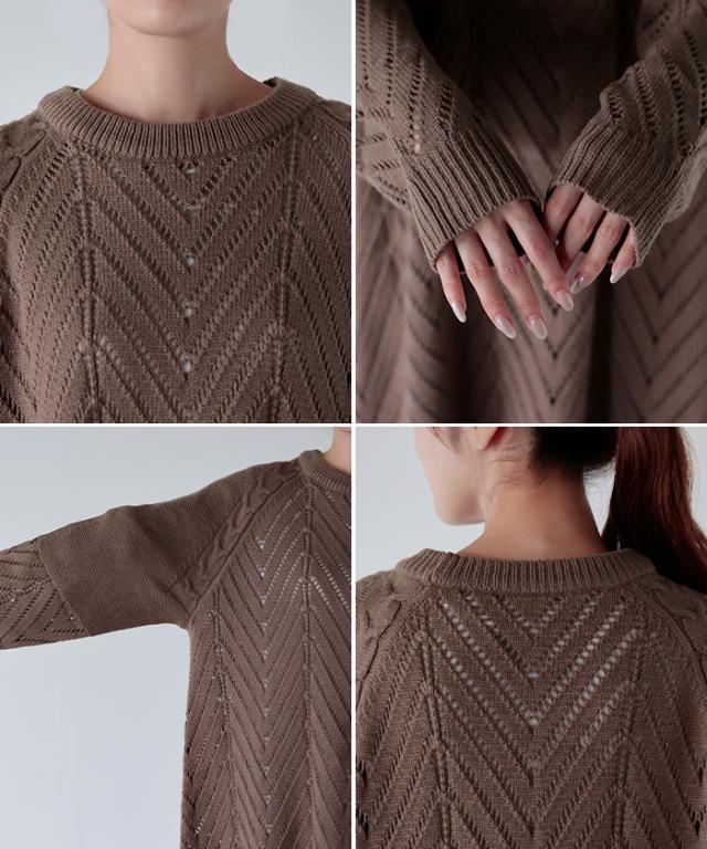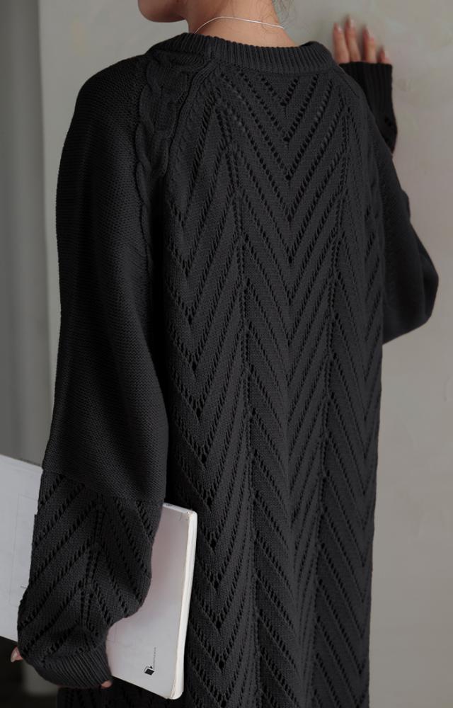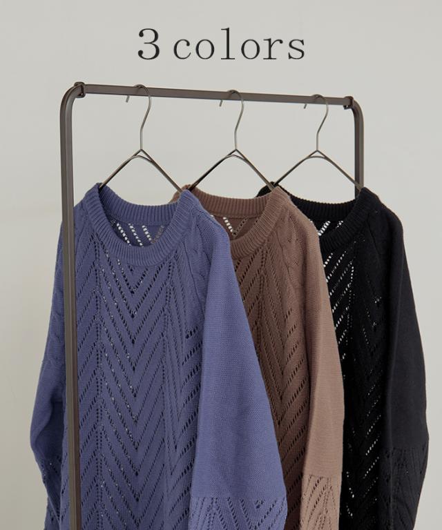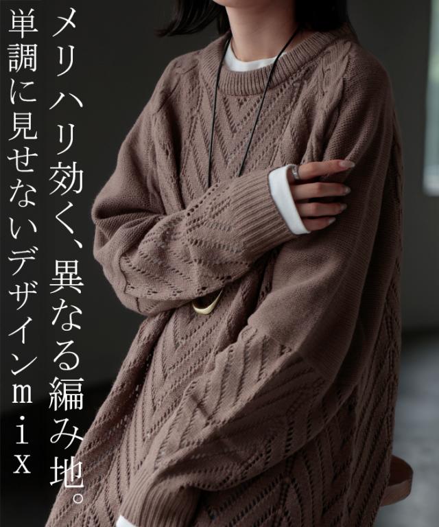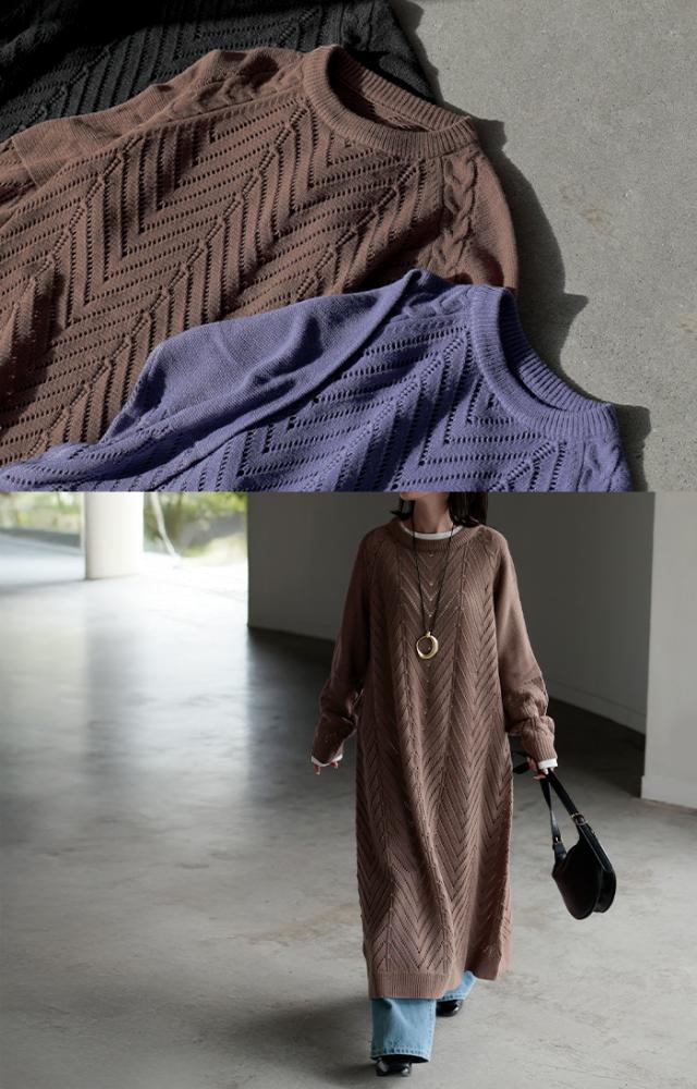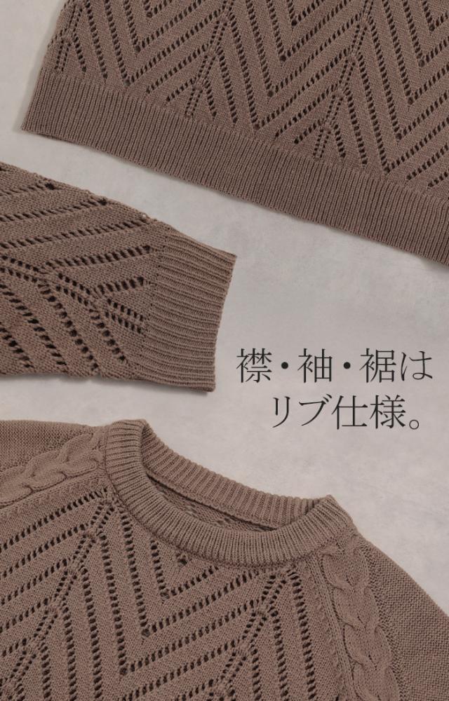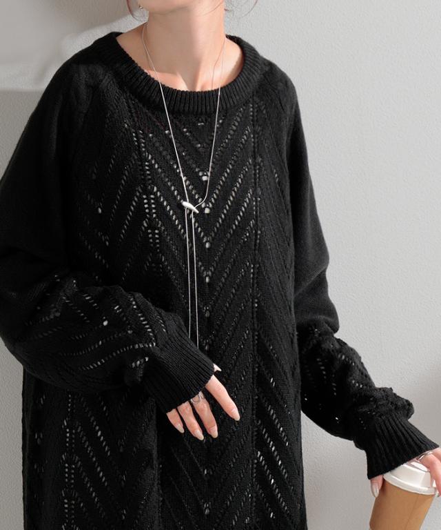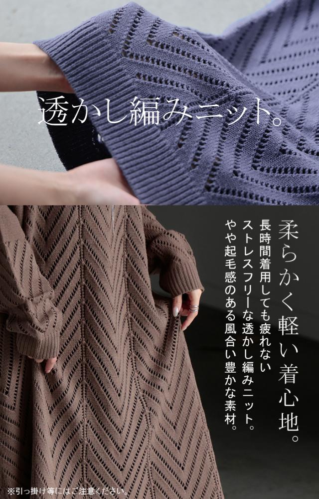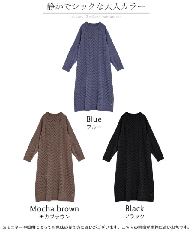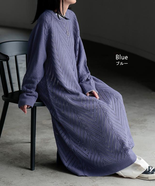 透かし柄のデザイン編地が可愛いニットワンピースです。