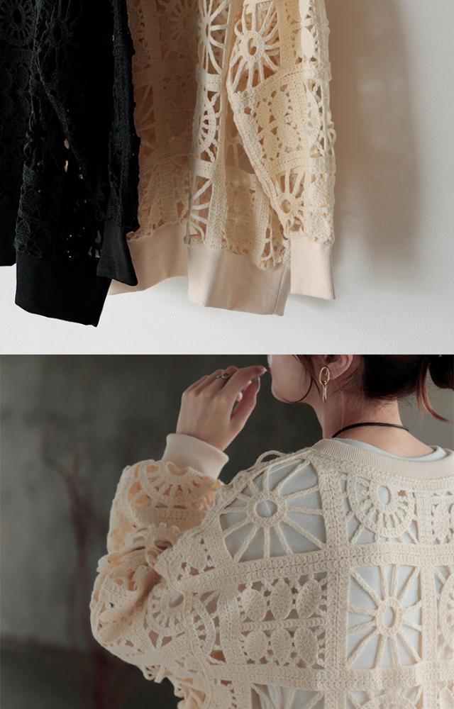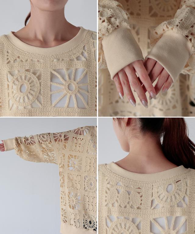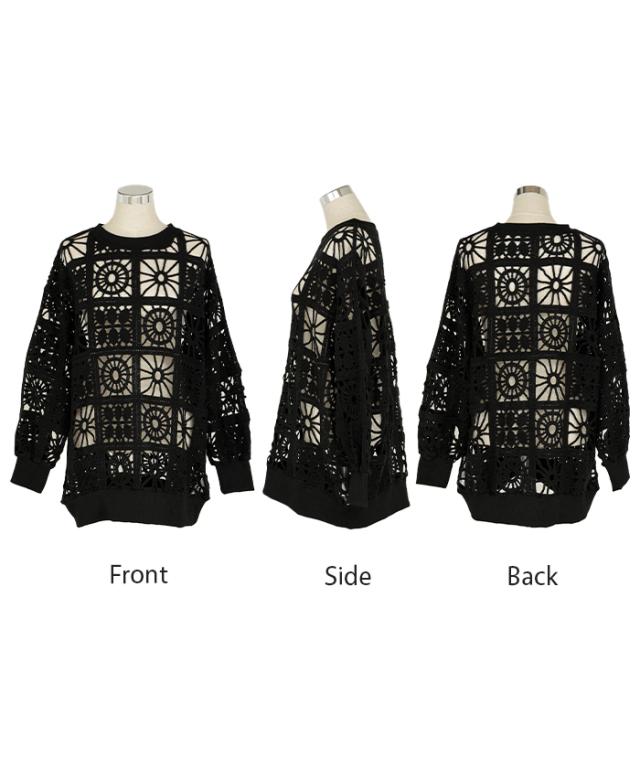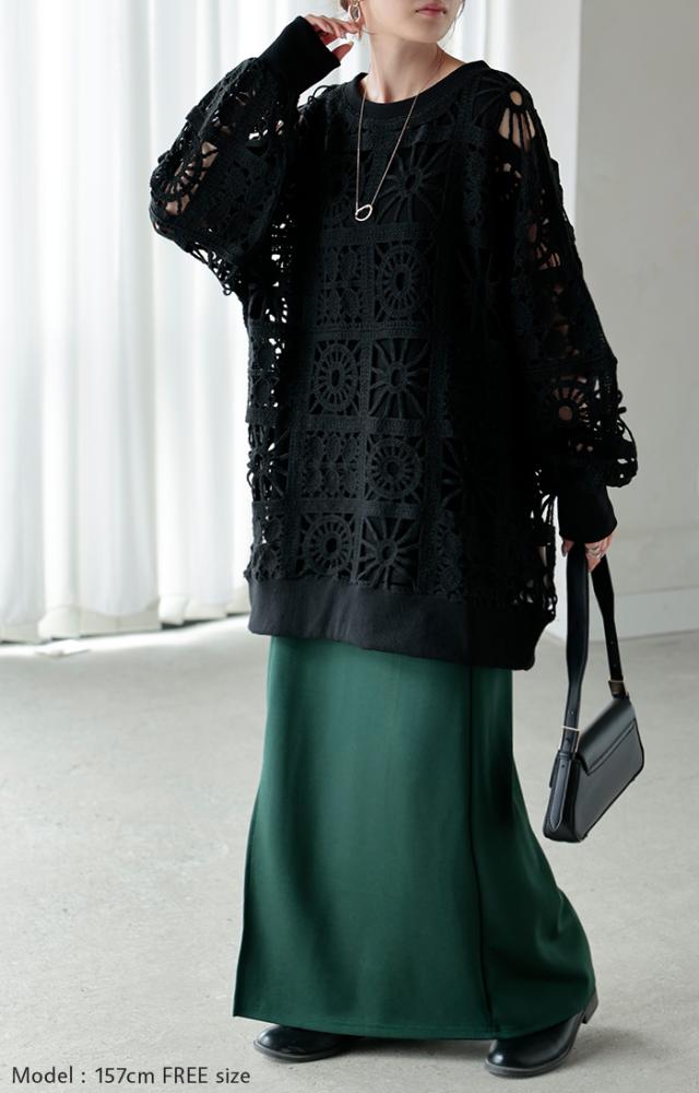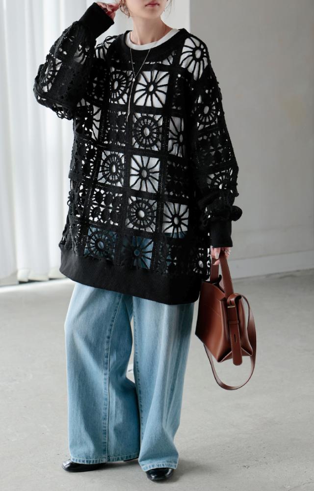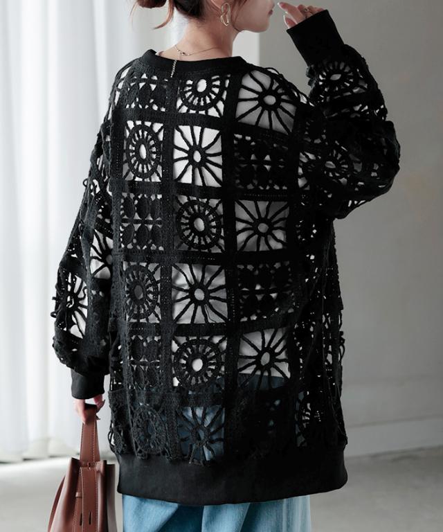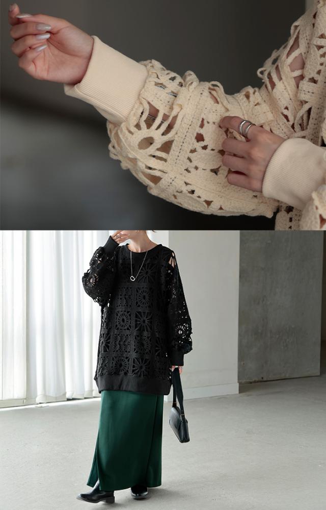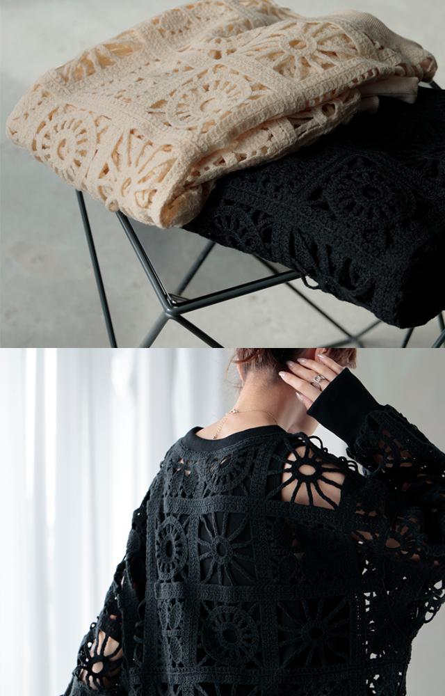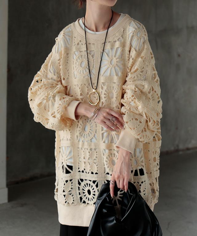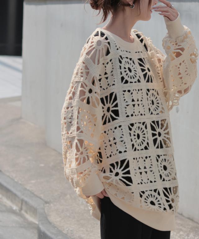 一枚で主役になれるフェミニンなかぎ編み風プルオーバーです。
