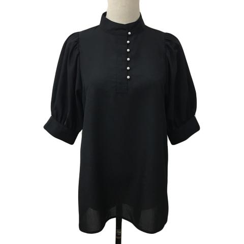 【中古】テチチ シャツ ブラウス プルオーバー スタンドカラー ハーフボタン パール 無地 五分袖 フリー 黒