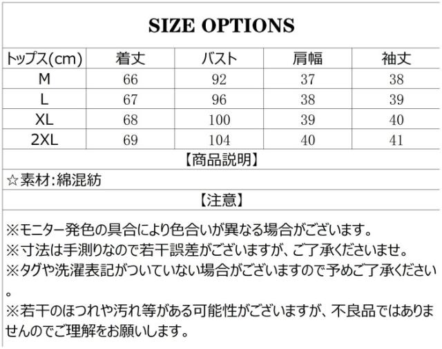 2XL:着丈73 バスト110 肩幅41 袖丈42