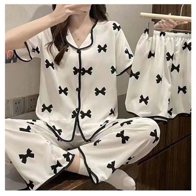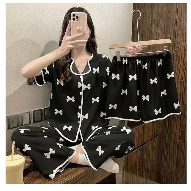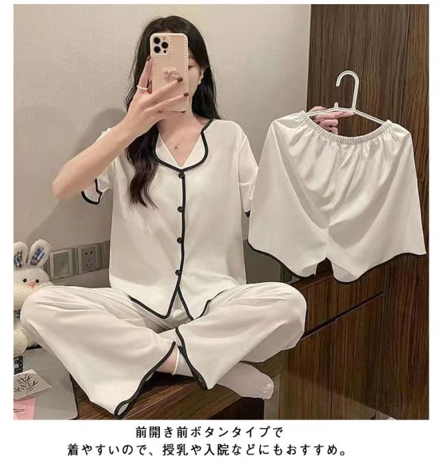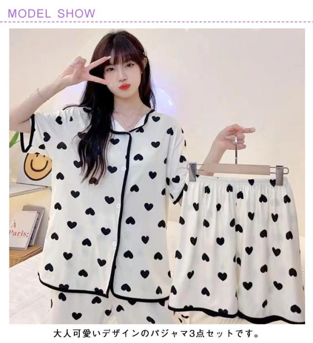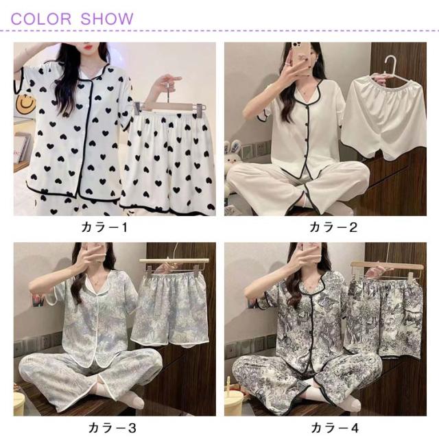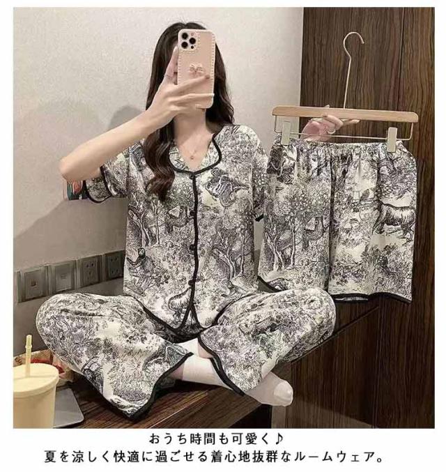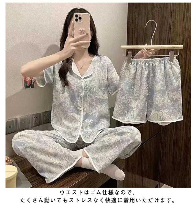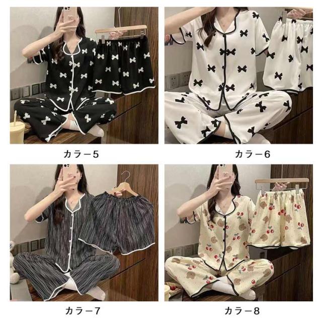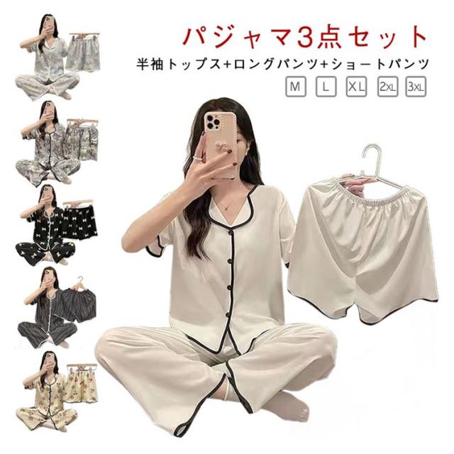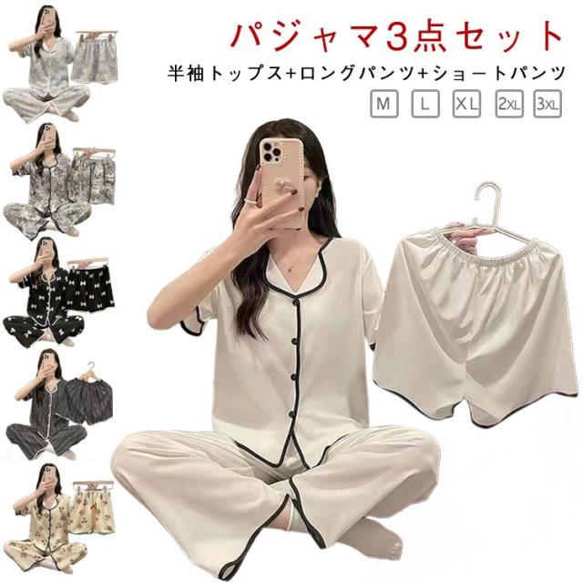 部屋着 夏 上下セット かわいい ルームウェア 前開き 短パン 涼しい M 大きいサイズ 半袖 3点セット 女性 ナイトウェア 可愛い ハーフパンツ パジャマ ショートパンツ ロングパンツ ウエストゴム 婦人用 寝巻き 半袖 L XL 2XL 3XL