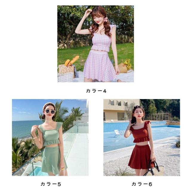 水着 タンキニ ノースリーブ 体型カバー 韓国水着 無地 レディース 水着 中学生女子 中学生 タンキニ フリル 露出控えめ スカート セパレート 高校生 水着 中学生水着 可愛い 水着 女子 パッド付き 10代 20代 30代 S M L