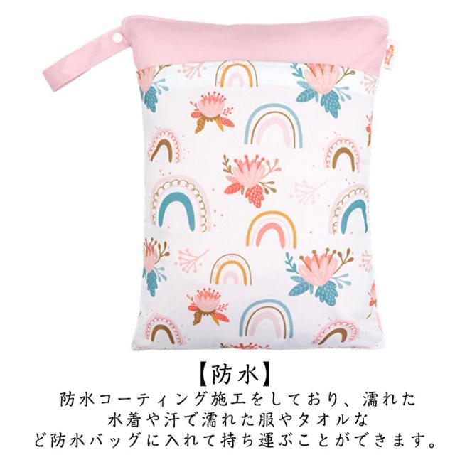 | 【用途】汚れ物入れ 、着替え入れ オムツポーチ、トラベルポーチ、クラブ活動部活動の着替え入れ、化粧ポーチ、温泉バッグ、プールバッグ、ヨガバッグ、下着入れ、シューズケース、ビーチバッグ、お風呂バッグ 自宅用と外出用、洗い替え、親子でバリエーションを変えたりと用途に合わせてバッグを使用することができお得です。 豊富なデザインでご兄弟や親子で種類を変えて使い分けたりもできるのでとても便利です! お子様やご自身のクラブ活動や部活動の汗をかいた服を入れたり、入院などの通いバッグとしたり。 【防水】防水コーティング施工をしており、濡れた水着や汗で濡れた服やタオルなど防水バッグに入れて持ち運ぶことができます。また、お子様のおもちゃや着替えなどを水から守るといった事もできます。 ※水が滴っている状態でバッグに入れるのではなく、一度絞ってから防水バッグに入れてください。 【スナップストラップ付き】スナップストラップ付きの持ち手があり、ベビーカー 車のヘッドレストや座席 バスルームの手すりなどあらゆる所に掛けれるので非常に便利です。 【コンパクト】ビニールバッグなどは場所を取りますが、この防水バッグは使用しない場合はコンパクトに折りたたむことができるので保管場所を取りません。 | |
