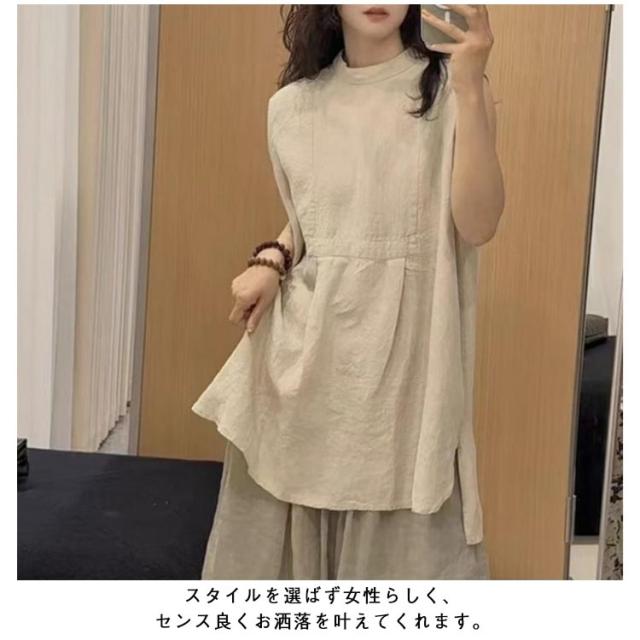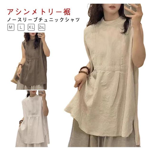 ノースリーブ ロングシャツ ロング丈 レディース ブラウス チュニック L シャツ ブラウス チュニックブラウス アシンメトリー裾 大人 かわいい 体型カバー 大人 カジュアル M ノースリーブ XL