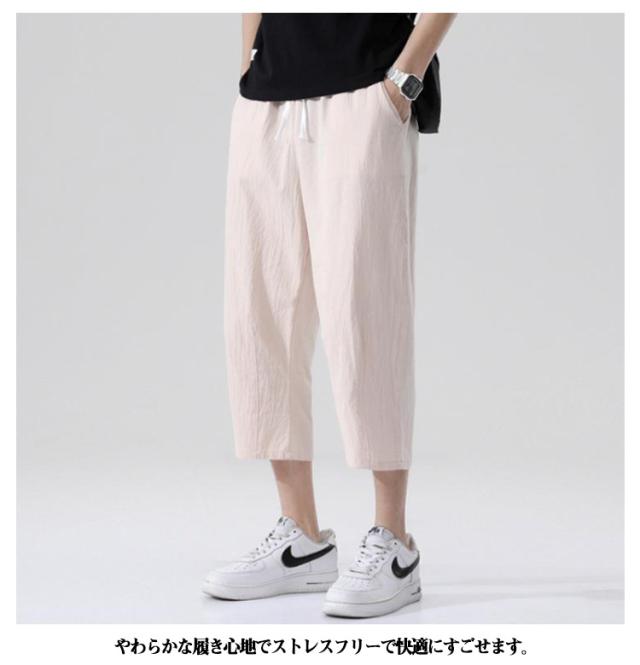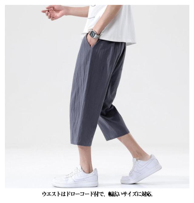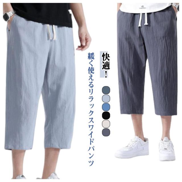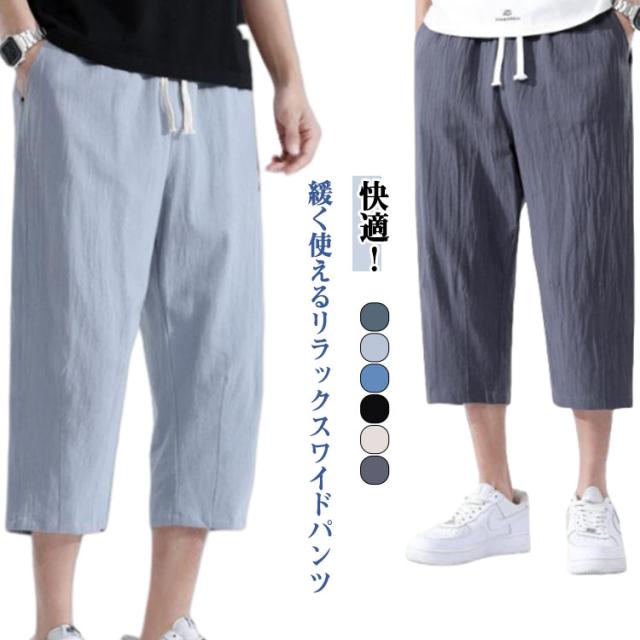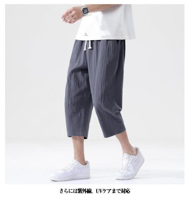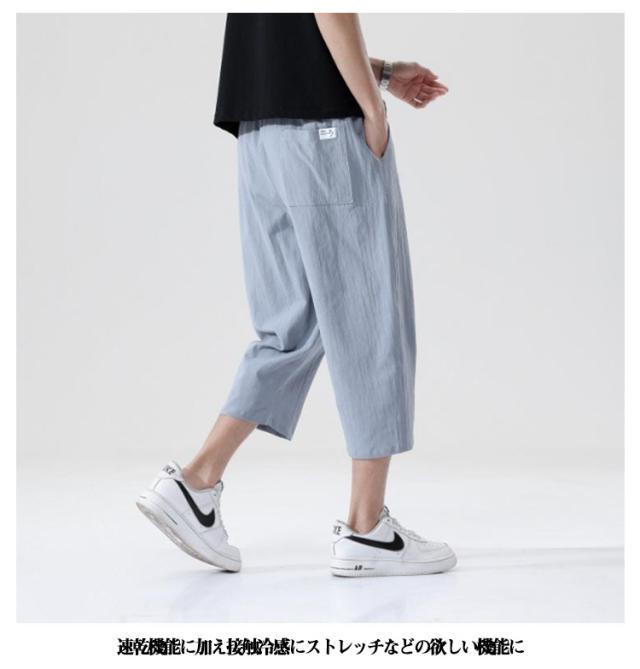 7分丈ワイドパンツ イージーパンツ ワイドシルエット ストレッチ ワイドパンツ 無地 ワイドパンツ 7分丈 接触冷感 カラーパンツ イージーパンツ メンズ サルエルパンツ アラジンパンツ メンズ 吸水速乾 UVケア