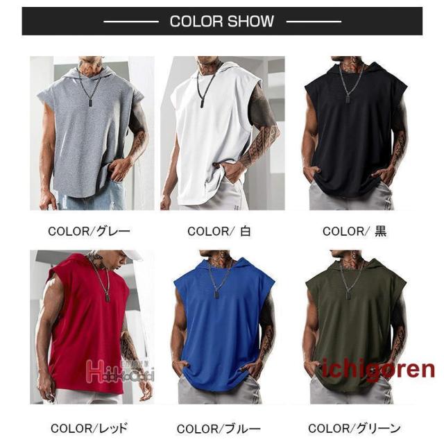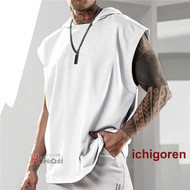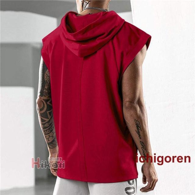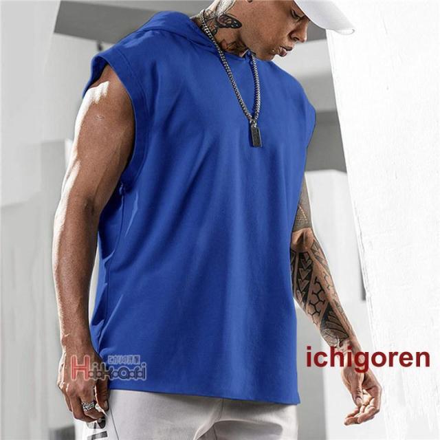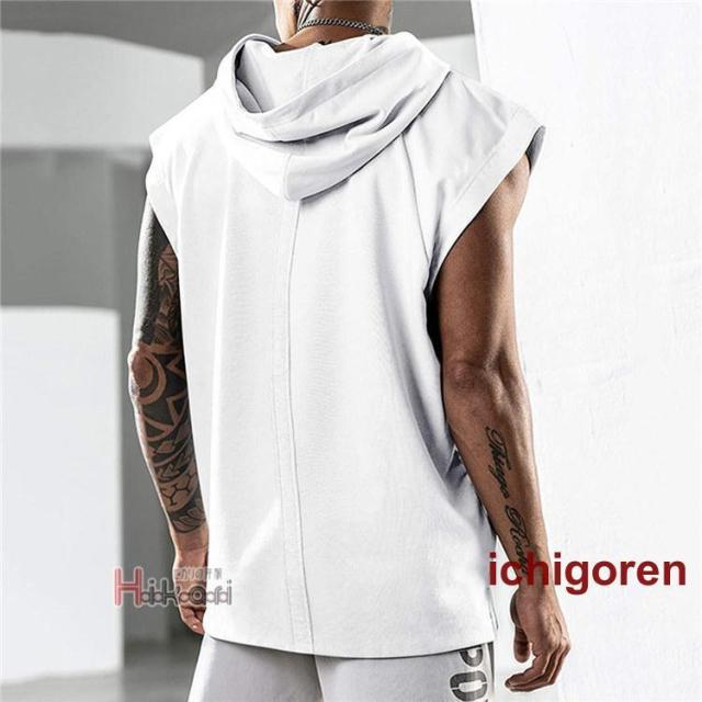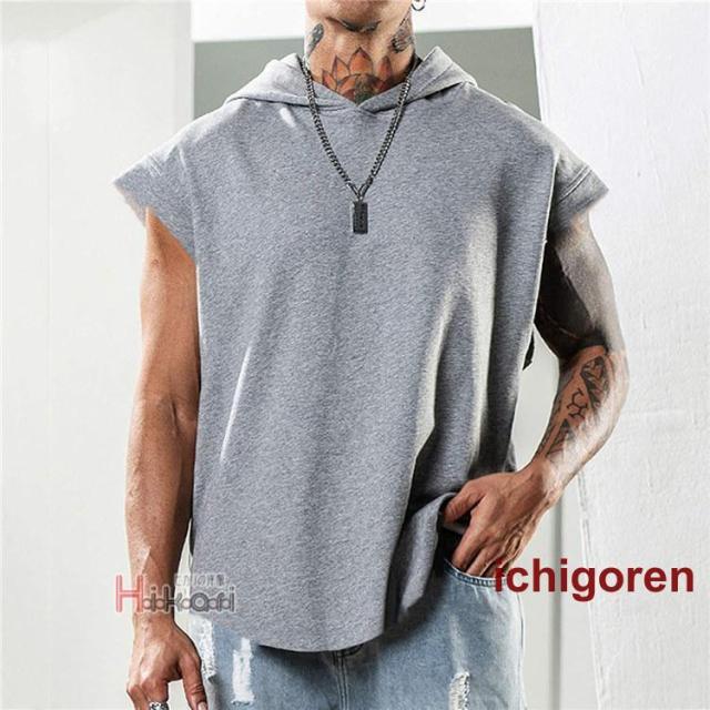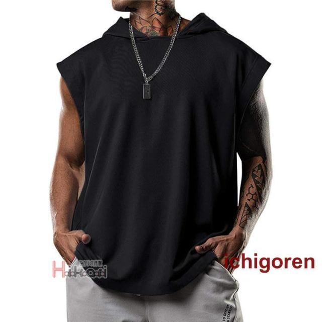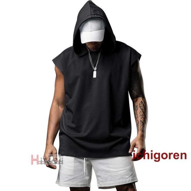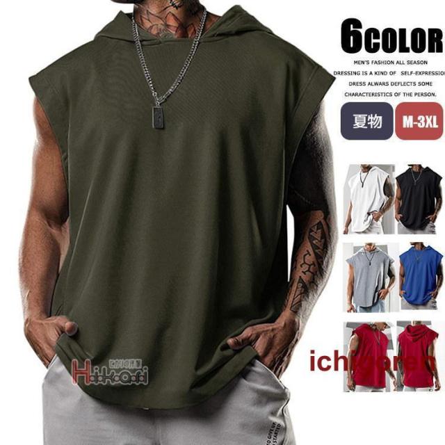 タンクトップ メンズ ノースリーブ パーカー 無地 袖なしパーカー プルオーバーパーカー スポーツウェア カジュアル トレーニング 筋トレ タンク トップス フード付き ジム服 トレーニングウェア 肌着 部屋着 ランニング バスケ かっこいい 夏物 夏服 メンズファッション