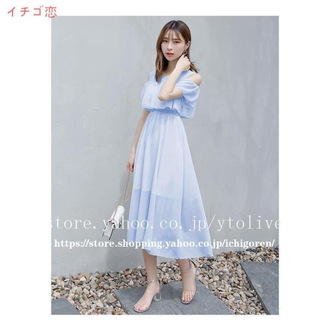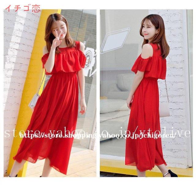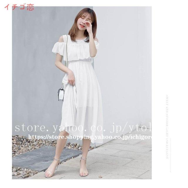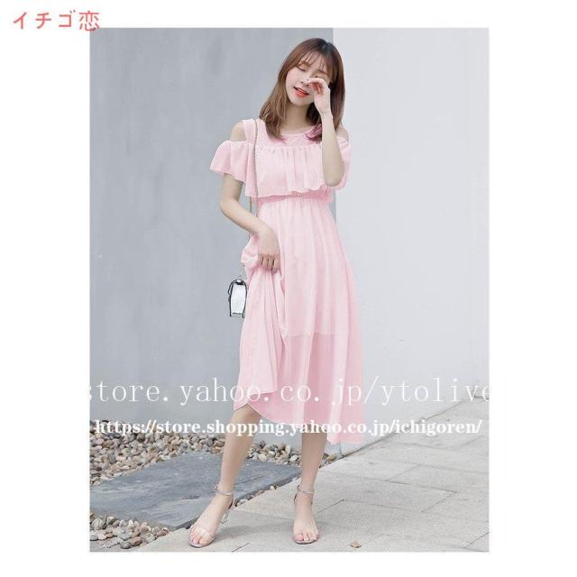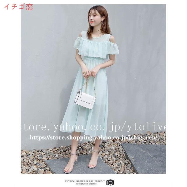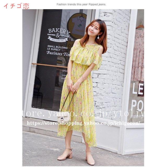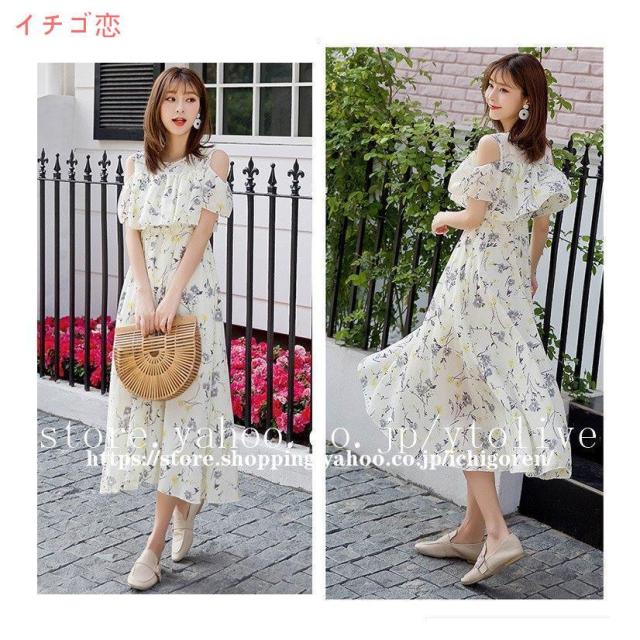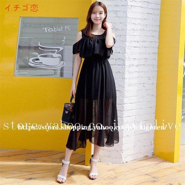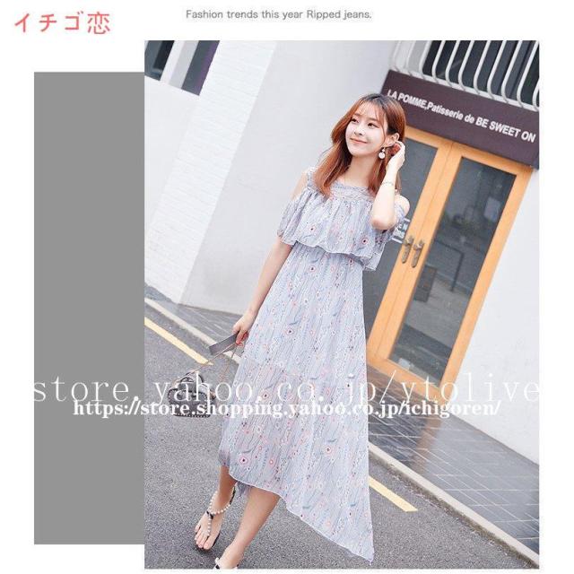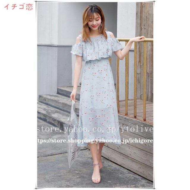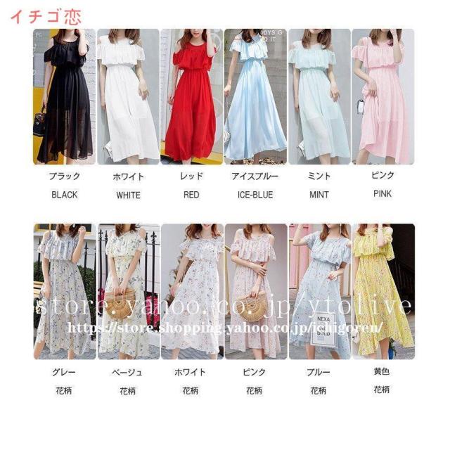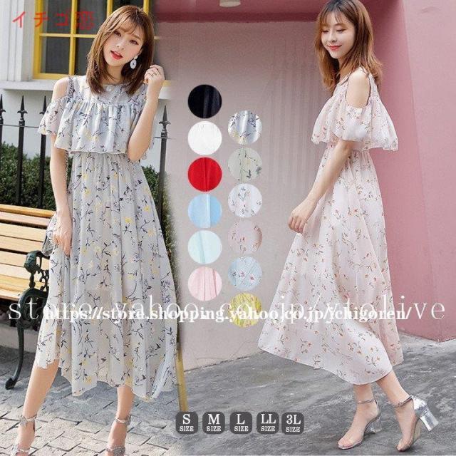 ワンピース オフショル レディース マキシ 膝下 ひざ下 無地 花柄 シフォン フリル リゾート 夏 フラワー