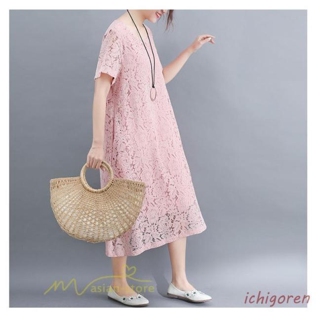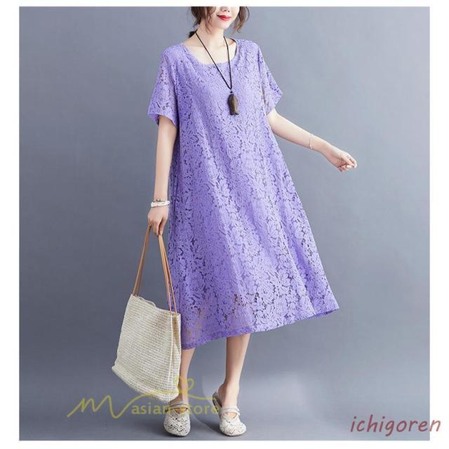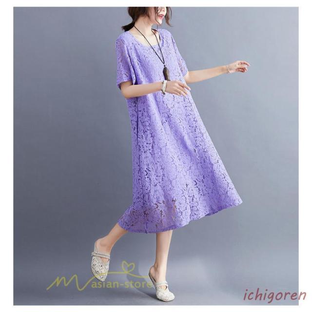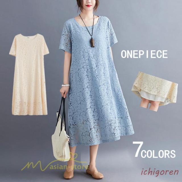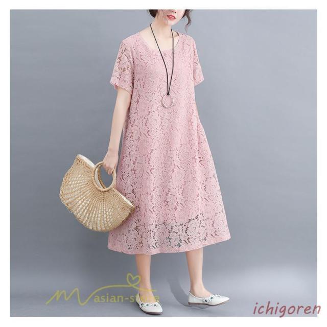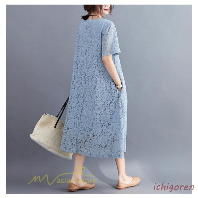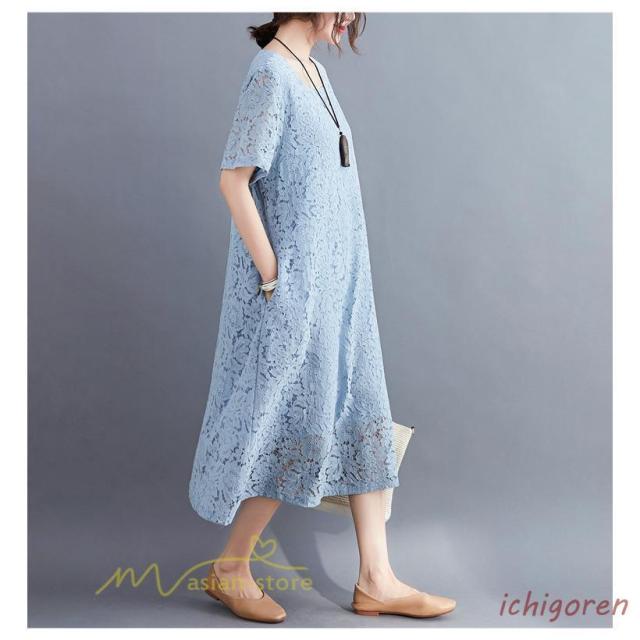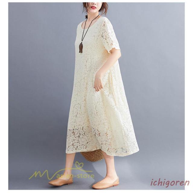 ワンピース 半袖 Aラインワンピース 夏服 レースワンピース 刺繍 上品 ワンピ 30代40代 ドレス お呼ばれワンピース 50代60代 ママ ミモレ丈 エレガント