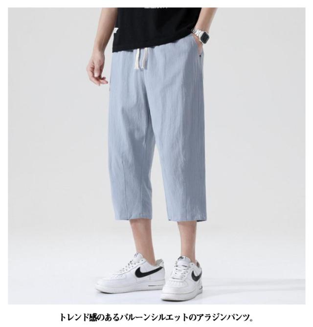 メンズ 7分丈 ワイドシルエット 無地 イージーパンツ カラーパンツ ワイドパンツ ワイドパンツ 接触冷感 メンズ イージーパンツ メンズ サルエルパンツ アラジンパンツ ストレッチ 吸水速乾 UVケア