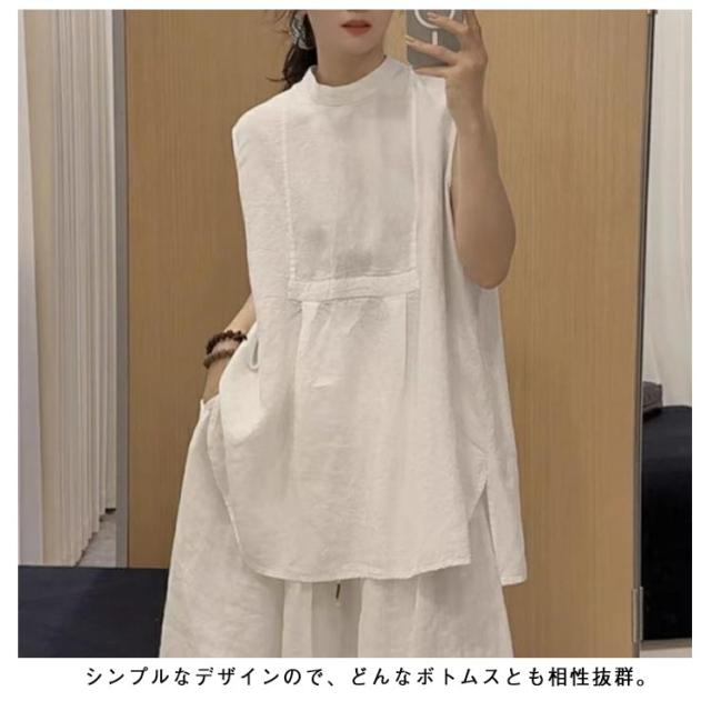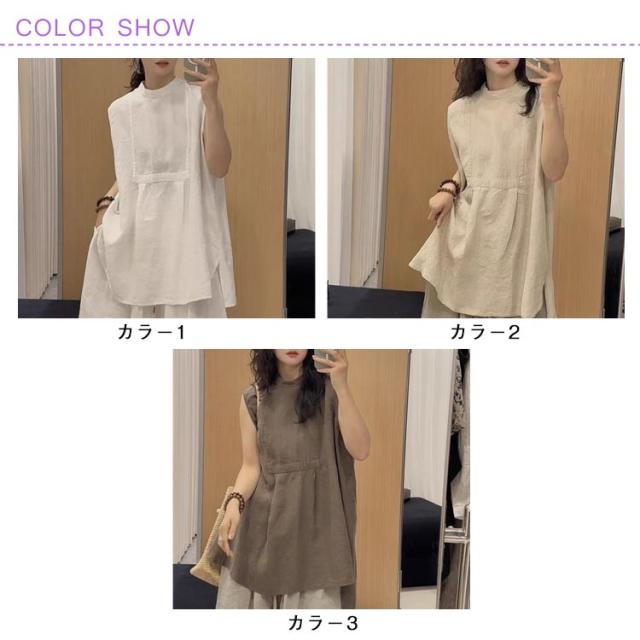 スタンドカラー チュニックブラウス ノースリーブ ノースリーブ レディース 大人 チュニック シャツ ブラウス ロングシャツ アシンメトリー裾 かわいい ロング丈 体型カバー 大人 カジュアル M L XL
