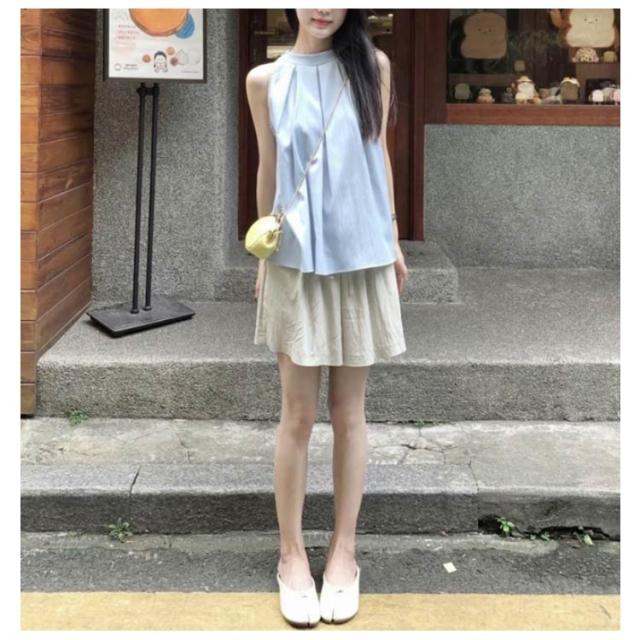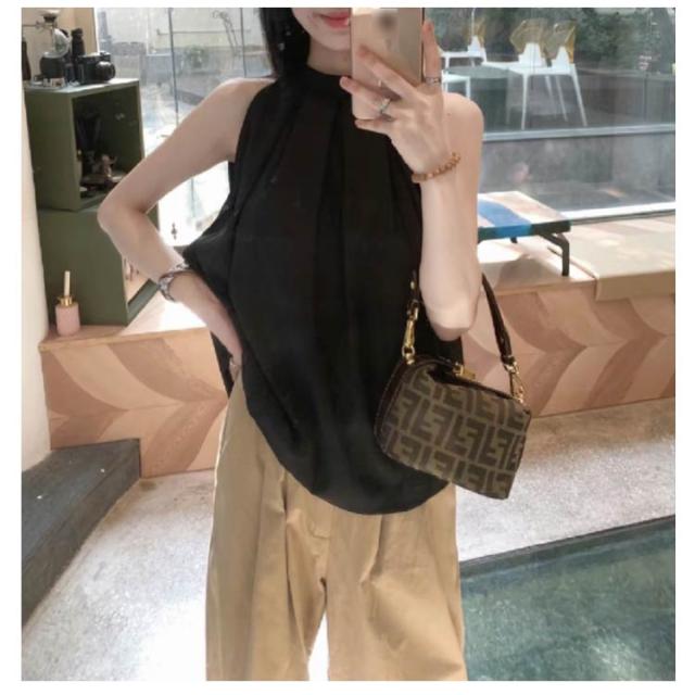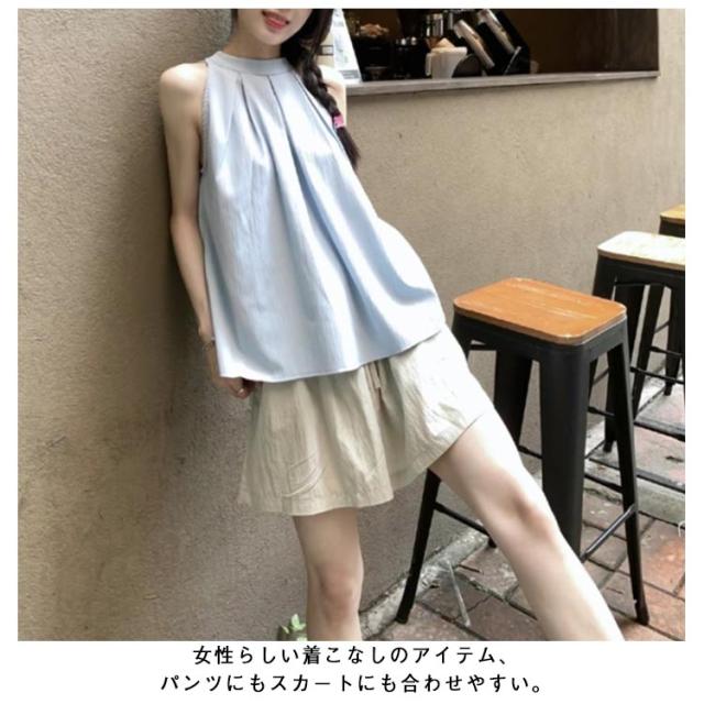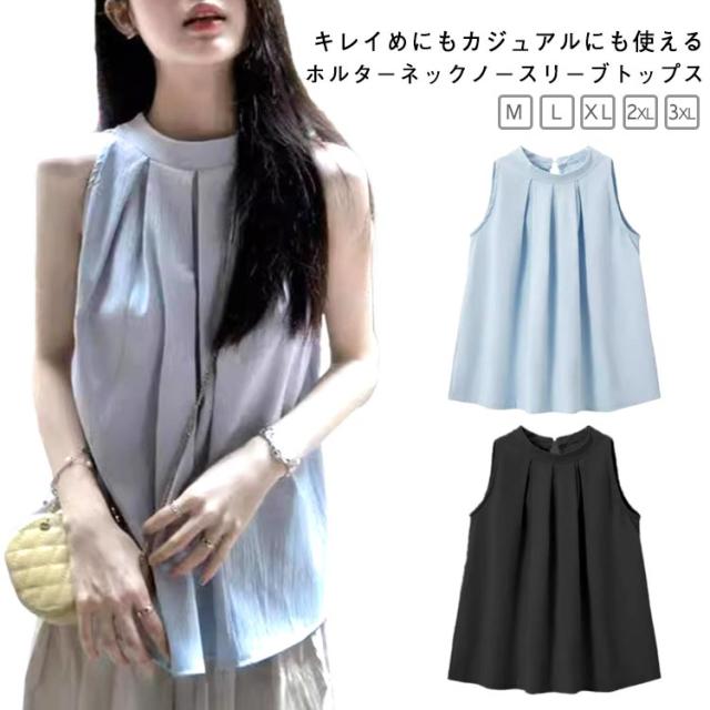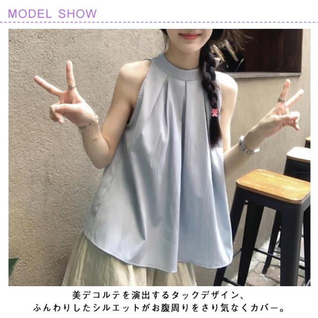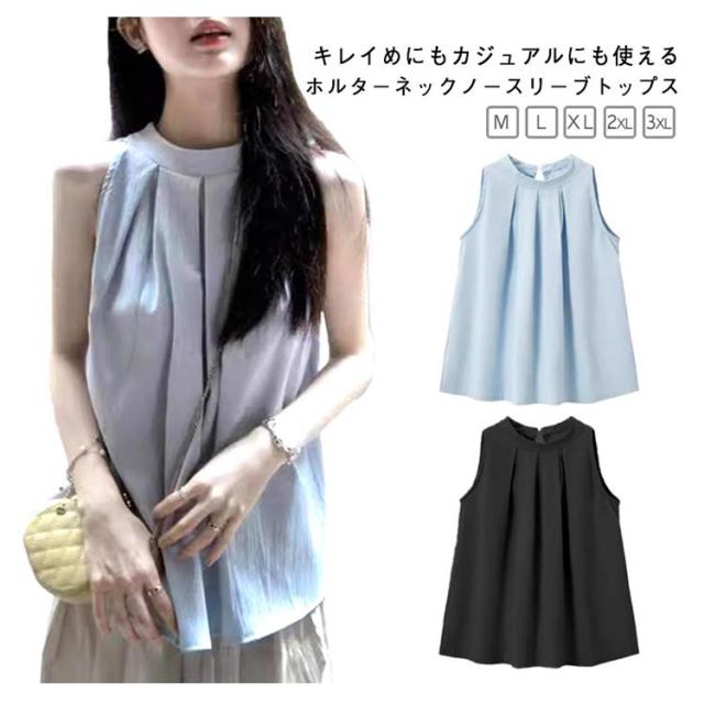 ホルターネック ホルターネック レディース タンクトップ シャツ トップス タック ノースリーブ 夏 袖なし ハイネック 可愛い Aライン 体型カバー 着やせ 春夏 ノースリーブブラウス フォーマル 20代 30代 40代 M L XL 2XL 3XL