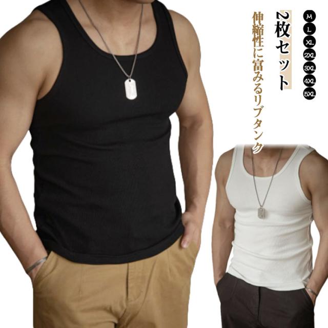 メンズ 2枚セット リブ ジム メンズタンクトップ タンクトップ ランニング タンクトップ 下着 インナー 2枚セット 筋トレ トレーニング スポーツ ゴルフ ダンス メンズタンク