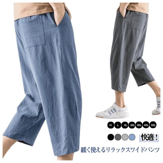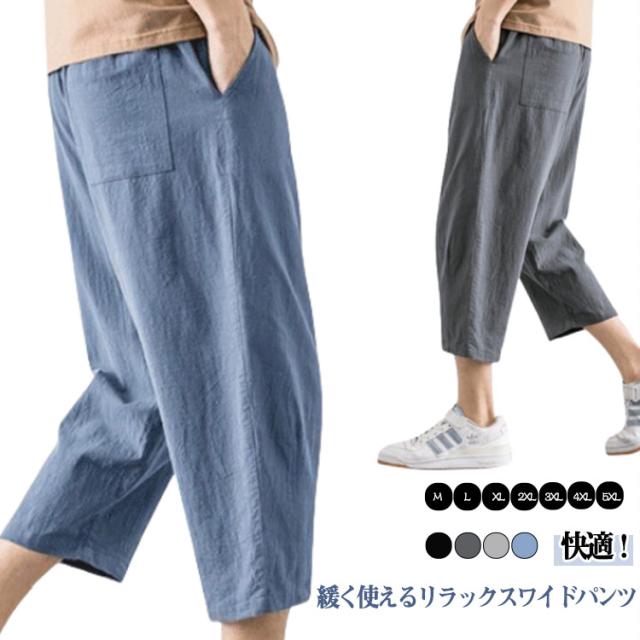 カラーパンツ ワイドパンツ 接触冷感 7分丈 ワイドパンツ イージーパンツ メンズ 無地 イージーパンツ 7分丈ワイドパンツ メンズ メンズ サルエルパンツ アラジンパンツ ストレッチ 吸水速乾 UVケア