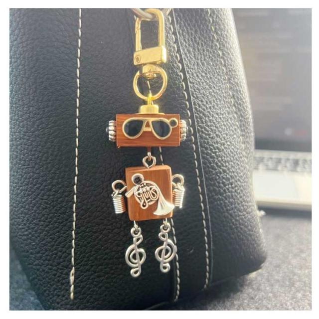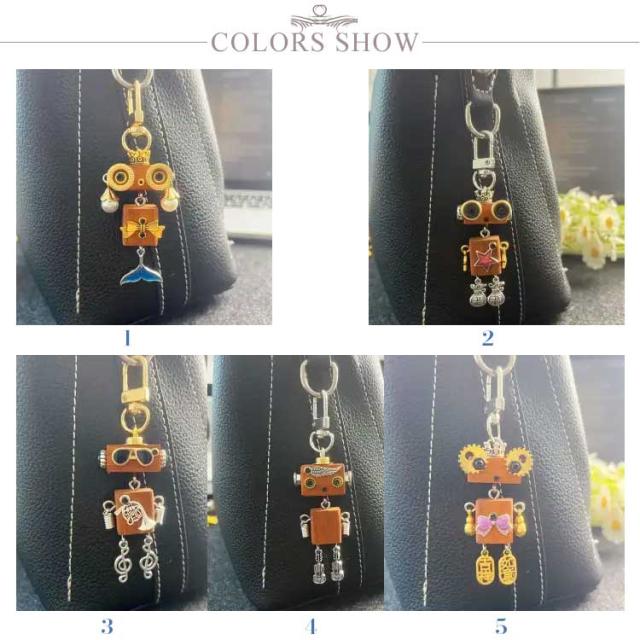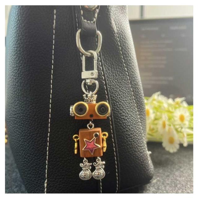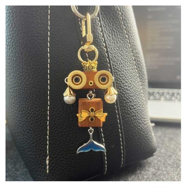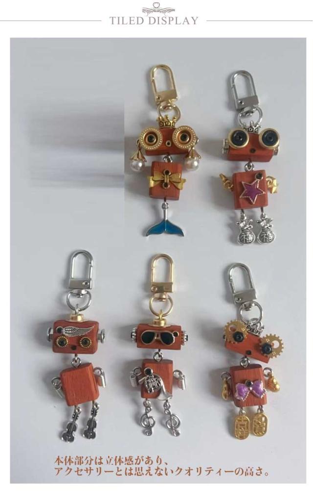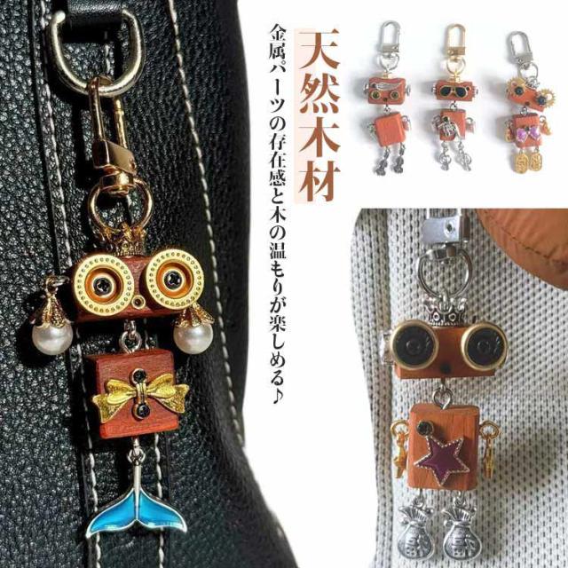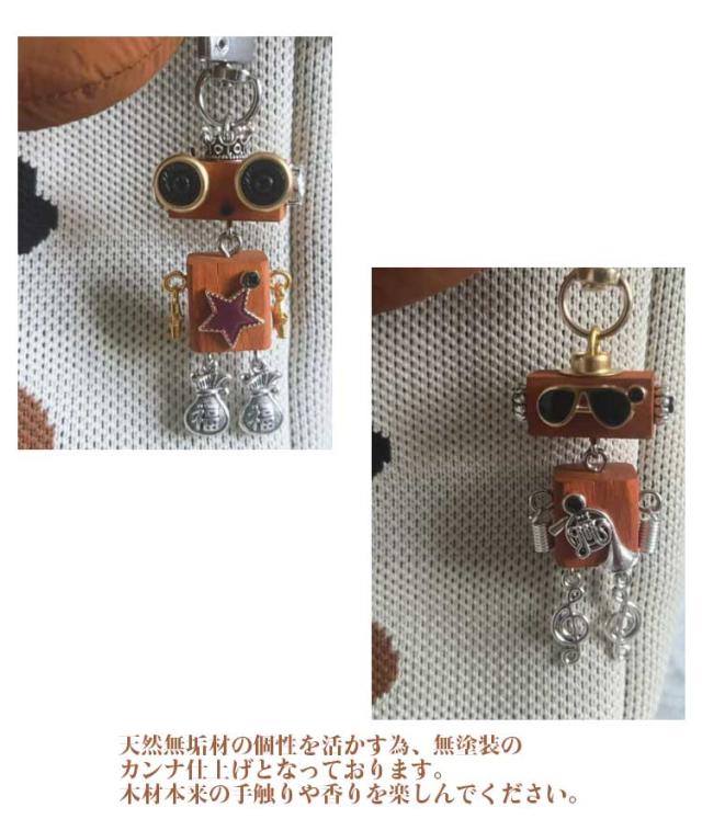 木製 ネックレス かわいい キーホルダー キーリング ロボット カラビナ 鍵 天然木材 ウッド 手作り ハンドメイド バッグチャーム ミニ ロボット 可愛い 送料無料 友達 ギフト