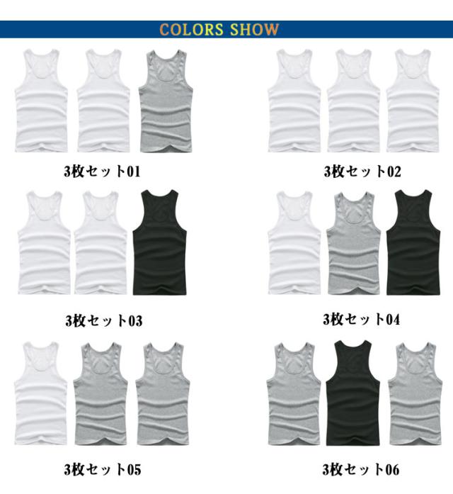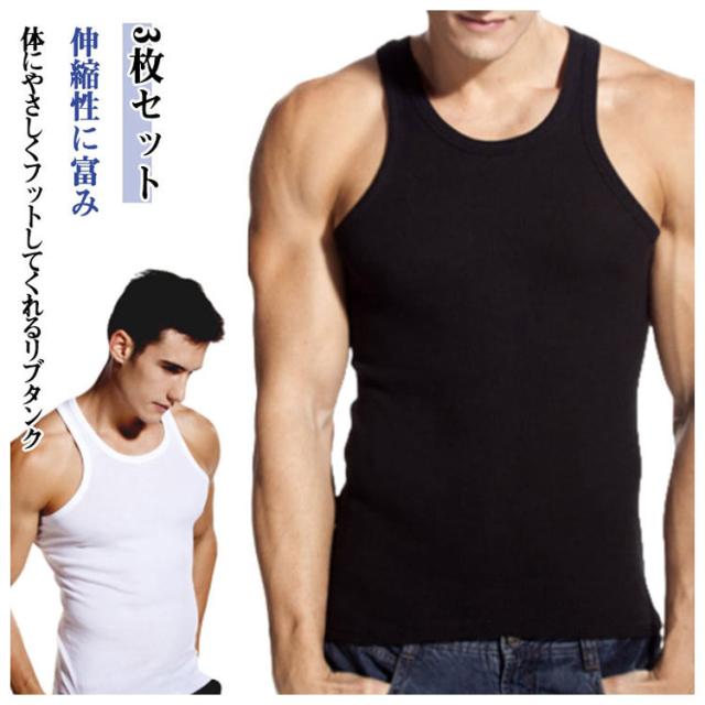 3枚セット ランニング メンズ トレーニング 3枚セット リブ タンクトップ ジム 下着 ノースリーブ タンクトップ メンズタンクトップ 筋トレ スポーツ ゴルフ ダンス メンズタンク