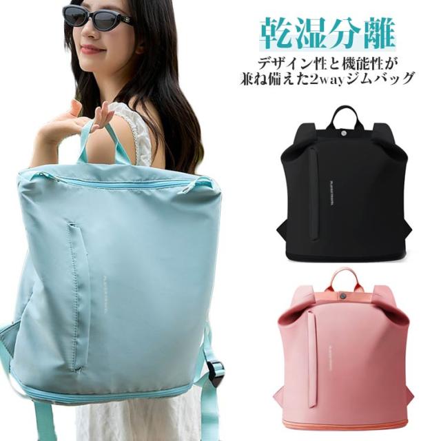 | フォルムアレンジ自在♪ デザイン性と機能性が兼ね備えた2wayジムバッグ。 濡れたものと乾いたものを分けられる防水ポケット付きで、濡れたタオルなど困らず収納できます。 底面にはシューズ専用収納スペースを装備しているので、靴と他の荷物を分けて収納できて衛生的です。 撥水加工で水や汚れにも強く、雨の日も安心。水を弾くので汚れもサッと拭けてお手入れ簡単です。 リュックとして背負っても、手持ちバッグとしても使える2WAY仕様だから、コーデに合わせてスタイルチェンジできます。 シンプルでスタイリッシュなデザインで、通学バッグや普段のお出かけ、マザーズバッグとしてもおすすめです。ジムデビューや夏のレジャーにも、ぜひ取り入れてみてください! 無地おしゃれなデザイン、中学生や高校生、大人に年齢を問わず、だれでもおしゃれに使いまわせます。 | |