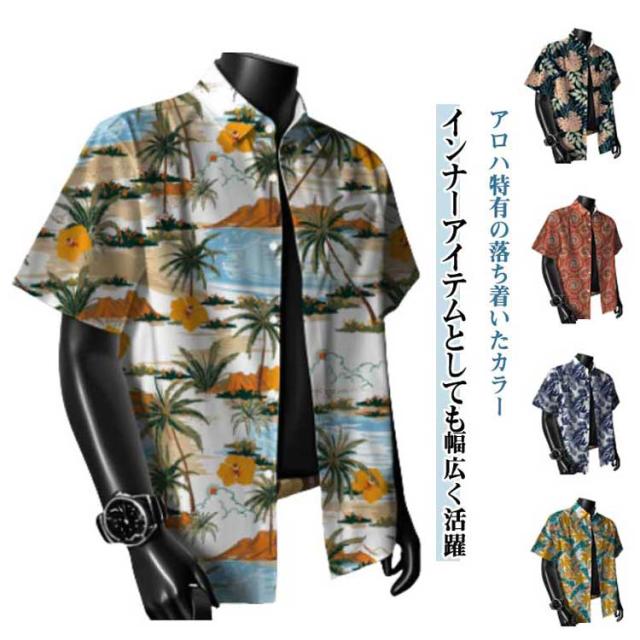 メンズ アロハシャツ 半袖 半袖シャツ 総柄 花柄シャツ アロハシャツ 夏 総柄シャツ 接触冷感 シャツ 夏服 大きいサイズ 軽量 カジュアルシャツ ビーチ シャツ