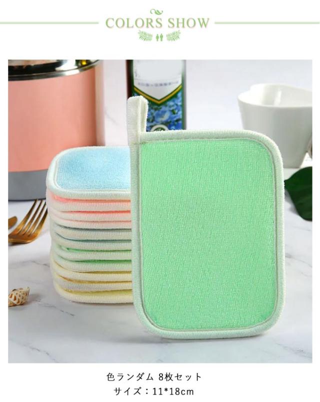 スポンジ タワシシート リバーシブルキッチンクロス 8枚セット フキン キッチンクロス 食器洗い用ふきん キッチンタオル 竹炭キッチンクロス 食器拭き 厚い 吸水性 傷を着けずに 油汚れ対策 洗浄力 両面使用 厚手 フキン コンロ レンジ