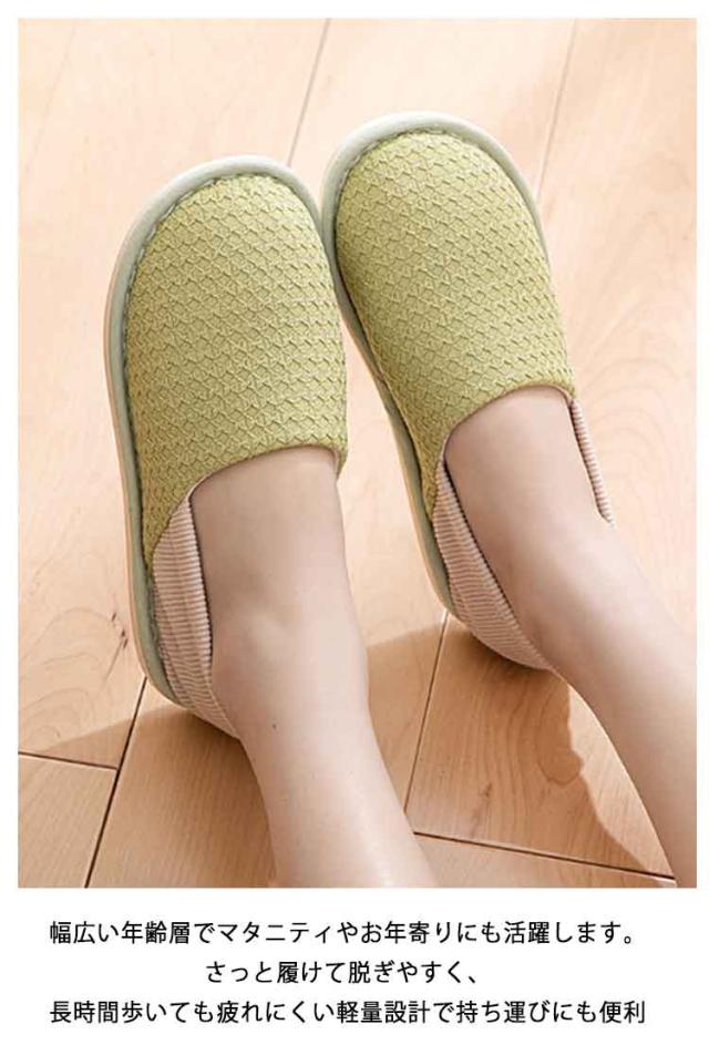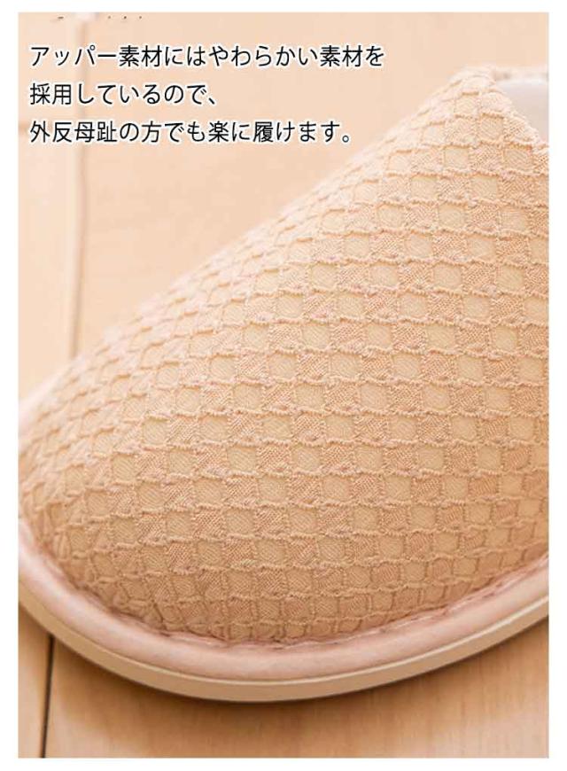 | おしゃれでシンプルなデザインなので室内履きルームシューズです。 アッパー素材にはやわらかい素材を採用しているので、外反母趾の方でも楽に履けます。 歩行時にフィットした状態で足に負担がかからず、快適に歩行ができます。 とてもシンプルで、かかとあり・つま先ありの室内用スリッパ(滑り止め付き)。 幅広い年齢層でマタニティやお年寄りにも活躍します。さっと履けて脱ぎやすく、長時間歩いても疲れにくい軽量設計で持ち運びにも便利 介護・リハビリや入院用のルームシューズ。妊娠中、産後の室内用。底面は滑り止め衝撃吸収ソールとなっています。 | |