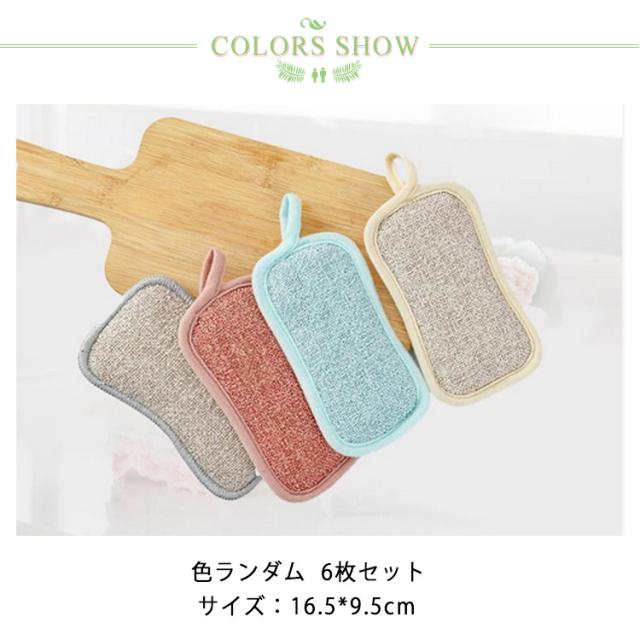 6枚セット タワシシート キッチンタオル ふきん リバーシブル竹炭キッチンクロス 竹炭キッチンクロス 食器洗い用メッシュふきん 厚手 食器拭き フキン スポンジ 吸水性 傷を着けずに 油汚れ対策 フキン 洗浄力 乾湿両用 竹炭キッチンクロス