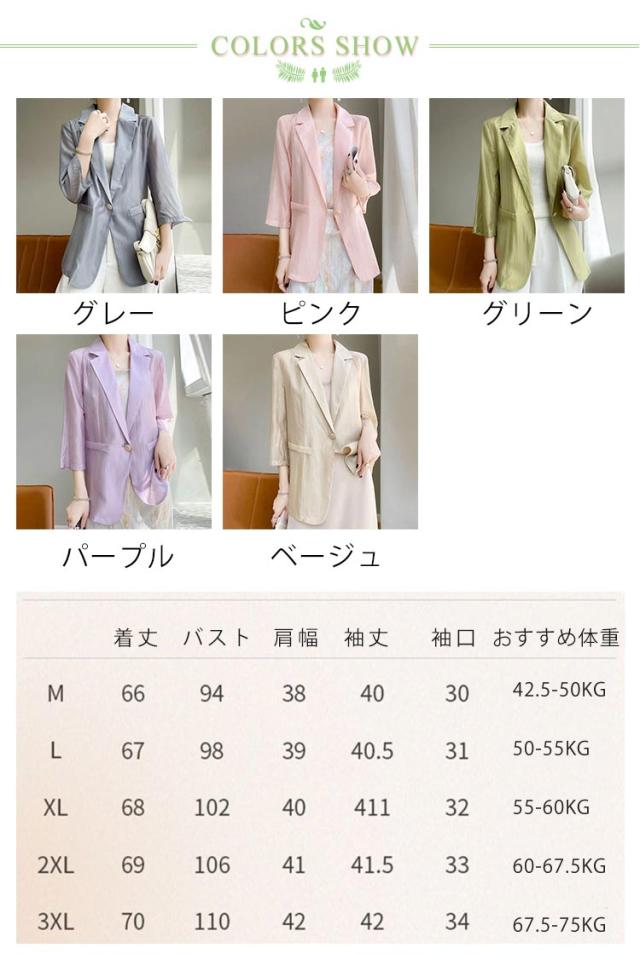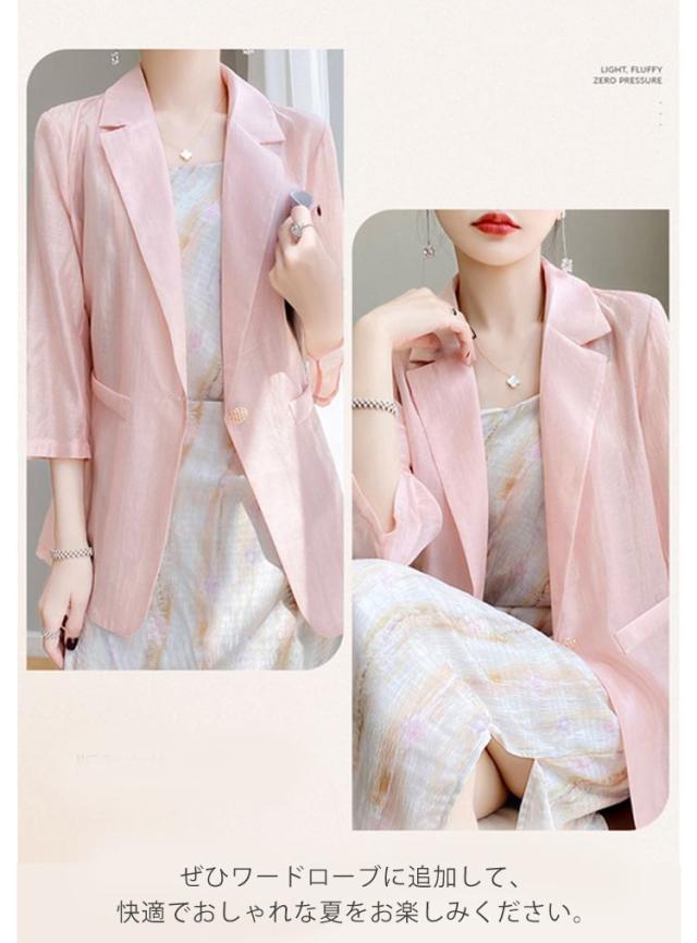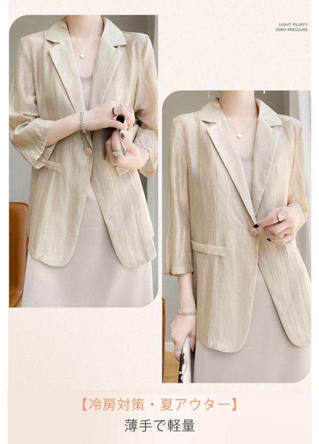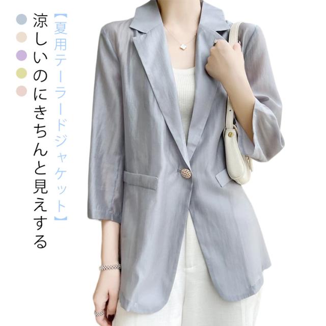 アウター テーラードジャケット レディース ジャケット 薄手 レディース 夏 夏服 七分袖 春 コート 春夏 サマージャケット 接触冷感 羽織 トップス サマージャケット 日焼け防止 スーツジャケット 春アウター 大きいサイズ