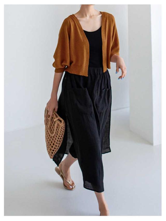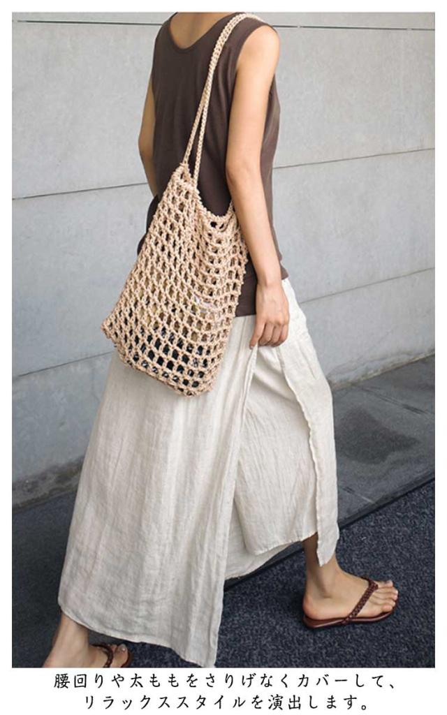 | 動きやすさと女性らしさを兼ね備えたスカート風ワイドパンツです。 前から見るとスカート、横はパンツ仕様で安心!エレガントなのに動きやすい。 通気性の良い素材で春夏も快適!汗ばむ季節にもべたつかず爽やかな着心地。 腰回りや太ももをさりげなくカバーして、リラックススタイルを演出します。 ウエストゴムで着脱も楽々!ストレスフリーな履き心地で、毎日でも履きたくなる一本。 高級感のあるデザインが、オシャレな雰囲気を演出します。 | |