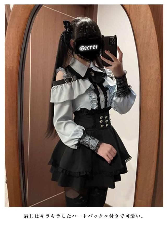 地雷系 レディース Aライン レース フリル 病みかわいい オープンショルダー ロリータ 量産型 長袖 服 ミニスカート 肩出しブラウス スカート セットアップ リボン フレンチ ガーリー系 お姫様 可愛い オープンショルダー ギャル