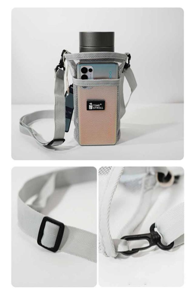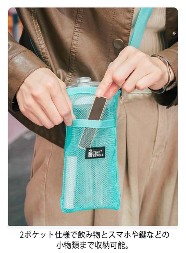 | 【2枚セット】 汚れにも強い、メッシュナイロン素材のボトルホルダー。 水筒、ペットボトルなどこれ1つで様々な容器が収納できる! 2ポケット仕様で飲み物とスマホや鍵などの小物類まで収納可能。 ショルダーベルトが付属しているから肩に掛けたり、持ち運びに便利。 ショルダーストラップは調節可能。中身が見える透け感は、ボトル類だけでなく小物を入れてもかわいい優秀アイテム♪ | |