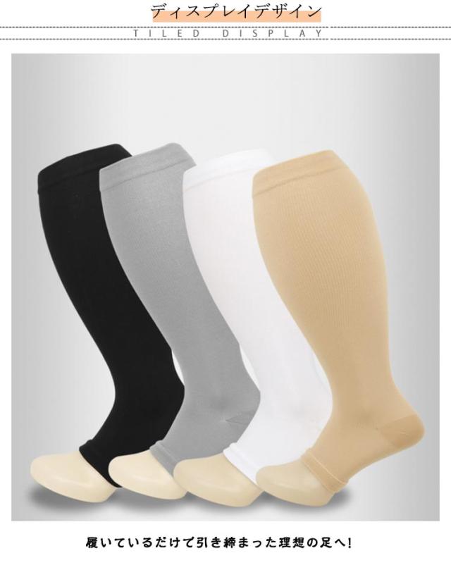 着圧ハイソックス オープントゥ 大きいサイズ 3足セット メンズ レディース 弾性ストッキング ひざ下 下肢静脈瘤 加圧ソックス 立ち仕事 美脚 靴下 ふくらはぎ むくみ サポーター 寝るとき 足のむくみ 浮腫み 飛行機