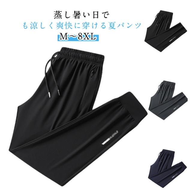 冷感パンツ 大人 ストレッチ カジュアル おしゃれ アイスシルクパンツ 薄手 涼しい ロングパンツ メンズ ジョガー 夏用 シンプル 大きいサイズ 無地 サマー 春夏 男性 ボトムス ゴルフパンツ 送料無料 男性用 アイスシルクパンツ 長ズボン ワークパンツ 無地 快適
