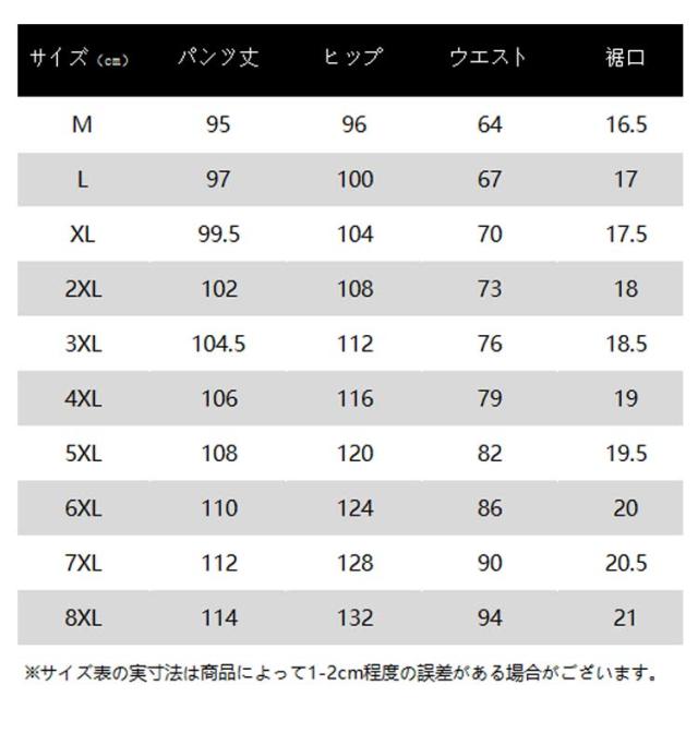 | サイズ | M L XL 2XL 3XL 4XL 5XL 6XL 7XL 8XL |