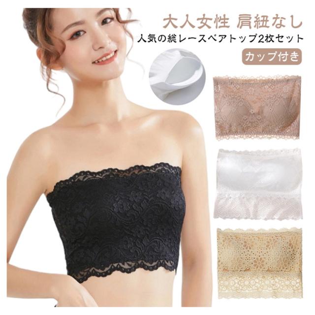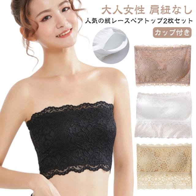 大人女性 チューブブラ きれいめ 総レース 2枚組 見せブラ マタニティ 肌着 チューブトップ レース ブラトップ ベアトップ チューブトップ ブラジャー キャミソール ノンワイヤーブラ レディース 無地 シンプル 可愛い かわいい 下着 インナー 肩紐なし レース
