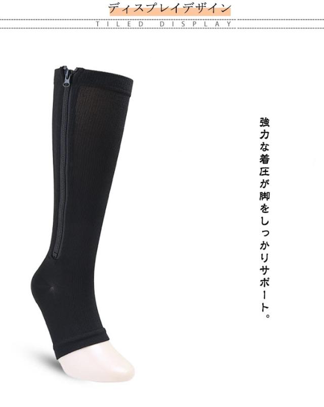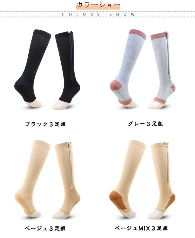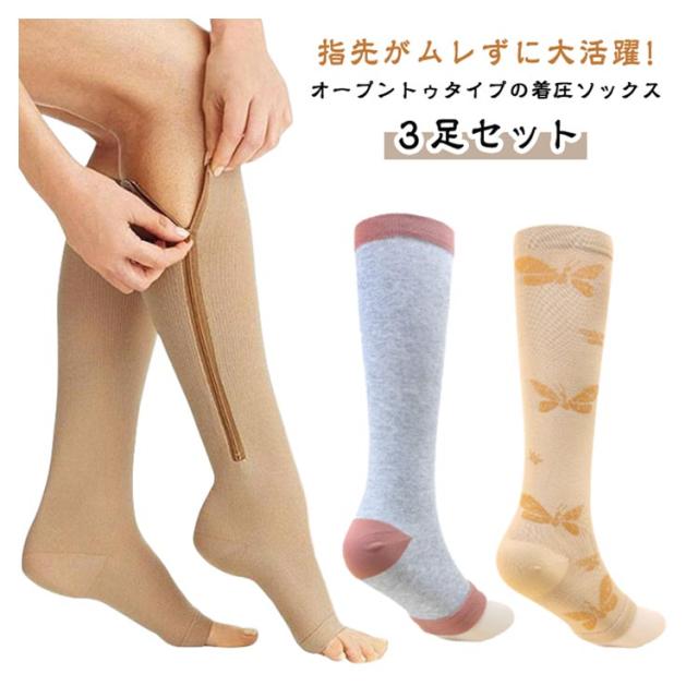 オープントゥ 3足セット サイドジップ 美脚 弾性ストッキング 着圧ハイソックス ひざ下 加圧ソックス 立ち仕事 下肢静脈瘤 靴下 ふくらはぎ むくみ サポーター 寝るとき 足のむくみ 浮腫み
