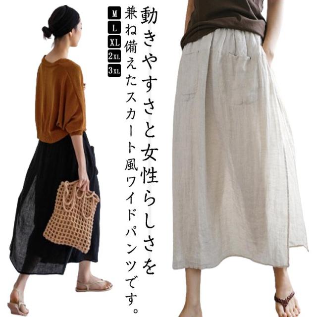 フェイクスカート レディース スカーチョ キュロットスカート スカート ワイドパンツ 春夏 ロングスカート 7分丈 ボトムス レイヤード 重ね着風 キュロットスカート 涼しい スカートパンツ リラックス ゆったり 無地 体型カバー