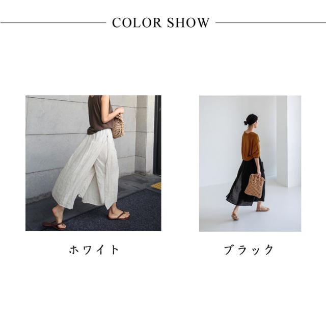 | 動きやすさと女性らしさを兼ね備えたスカート風ワイドパンツです。 前から見るとスカート、横はパンツ仕様で安心!エレガントなのに動きやすい。 通気性の良い素材で春夏も快適!汗ばむ季節にもべたつかず爽やかな着心地。 腰回りや太ももをさりげなくカバーして、リラックススタイルを演出します。 ウエストゴムで着脱も楽々!ストレスフリーな履き心地で、毎日でも履きたくなる一本。 高級感のあるデザインが、オシャレな雰囲気を演出します。 | |