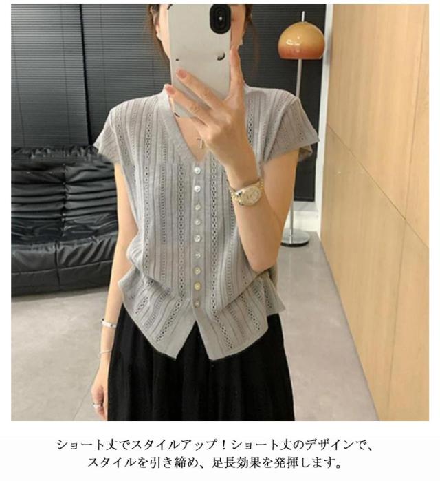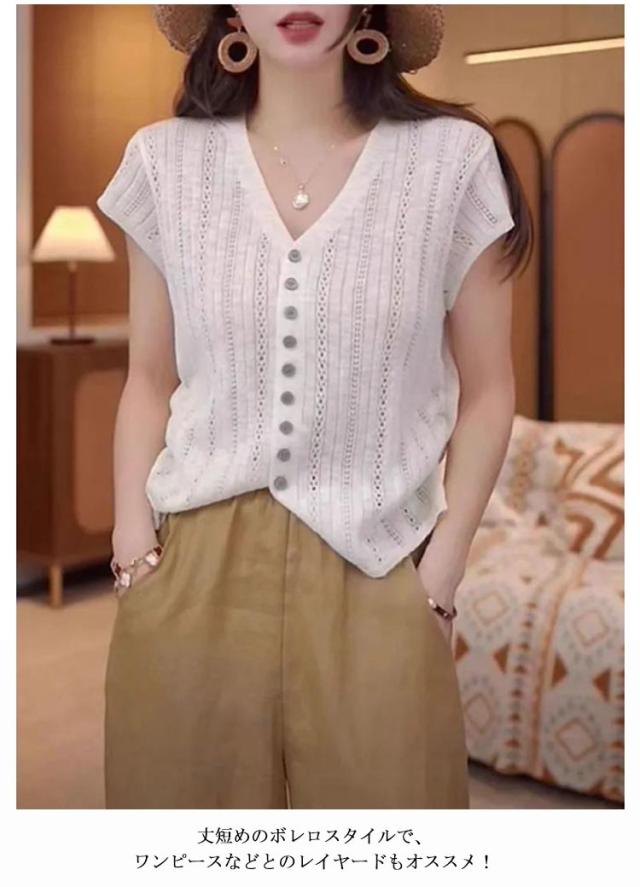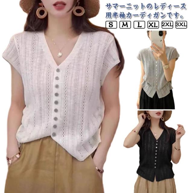 レディース カーディガン 春 薄手 重ね着 半袖カーディガン ゆったり 透かし編み Vネック 夏 涼しい 半袖 UV 紫外線対策 サマーニット トップス シアー ニット アウター 前開き ボタン 羽織り 送料無料 カジュアル きれいめ 透け感 送料無料 見痩せ 通勤 おしゃれ 30代