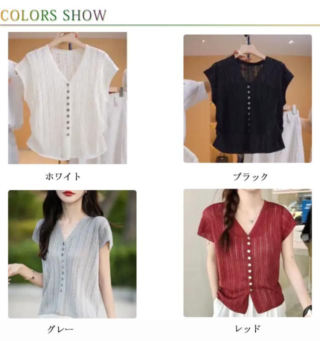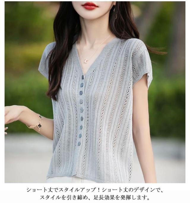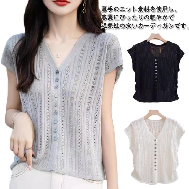 サマーニット 涼しい 薄手 送料無料 半袖カーディガン 夏 ニット 透かし編み レディース トップス 半袖 春 UV 紫外線対策 Vネック 夏 ゆったり 送料無料 アウター 前開き ボタン 羽織り 重ね着 カジュアル きれいめ シアー 透け感 見痩せ 通勤 おしゃれ 30代