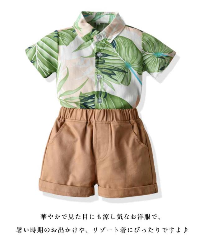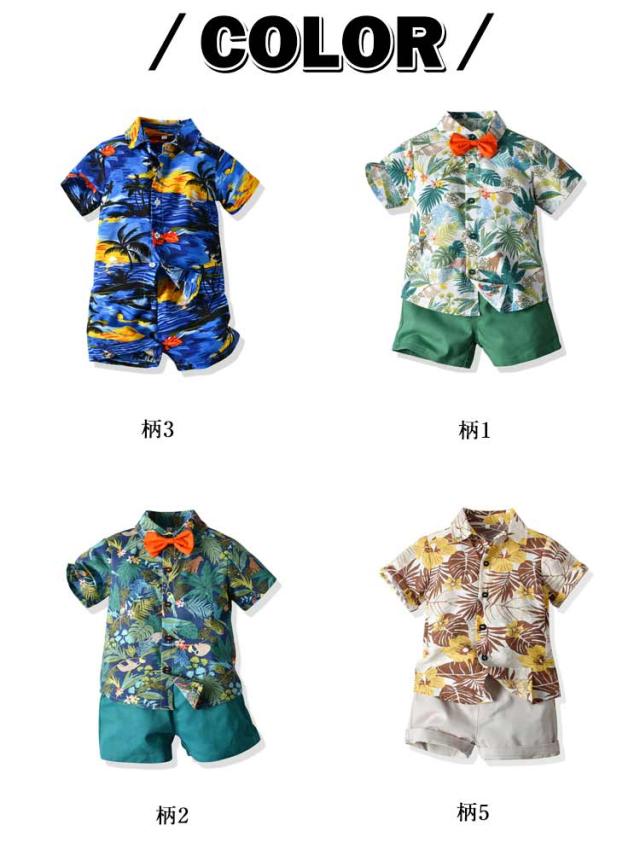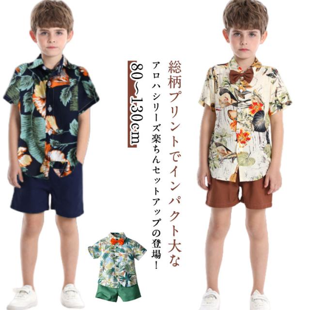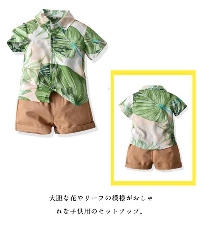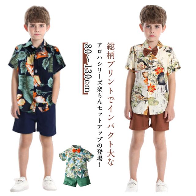 リゾート キッズ こども服 子供服 子供服 花柄 セットアップ 半袖 アロハシャツ 総柄 男の子 半袖シャツ 上下 ハーフパンツ おしゃれ 可愛い キッズファッション 夏物 アロハセットアップ 子供シャツ 男児 短パン 2点セット 旅行 ギフト プレゼント