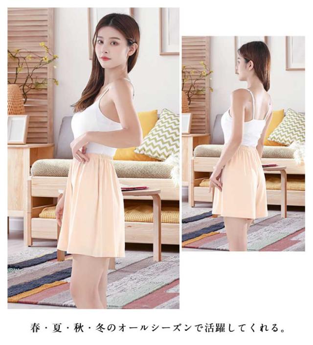 ペチコート ゴム かわいい ショート パンツ インナー シンプル 42cm 涼しい 透け防止 ペチパン 大きいサイズ 部屋着 ペチパンツ ルームウェア パンツ レディース キュロット インナーパンツ 秋 春 夏 透けない スリップ 大人女性