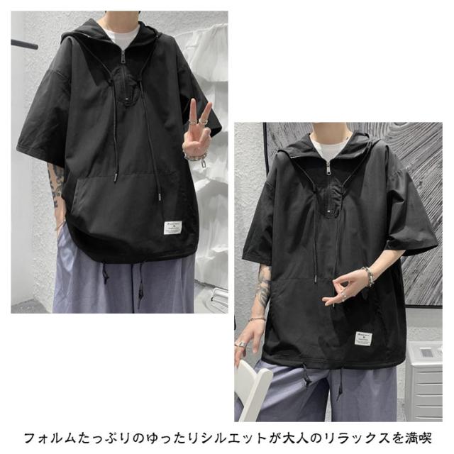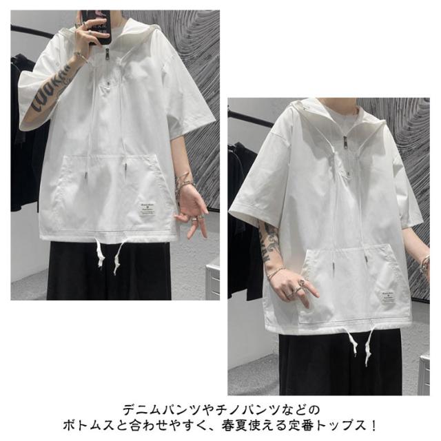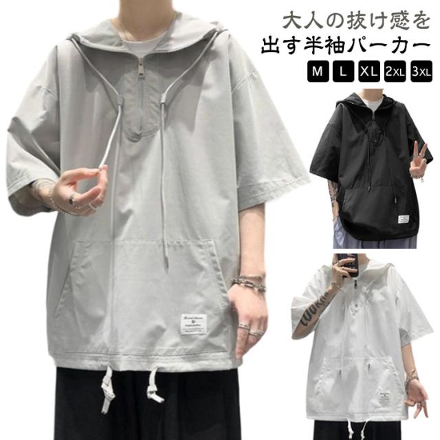 薄手 メンズ 半袖 パーカー 夏服 フード付き Tシャツ 半袖パーカー カジュアル 無地 ゆったり 体型カバー シンプル 春夏 おしゃれ プルオーバー 半袖 トップス 大きいサイズ 大人 男性 涼しい 夏 普段着