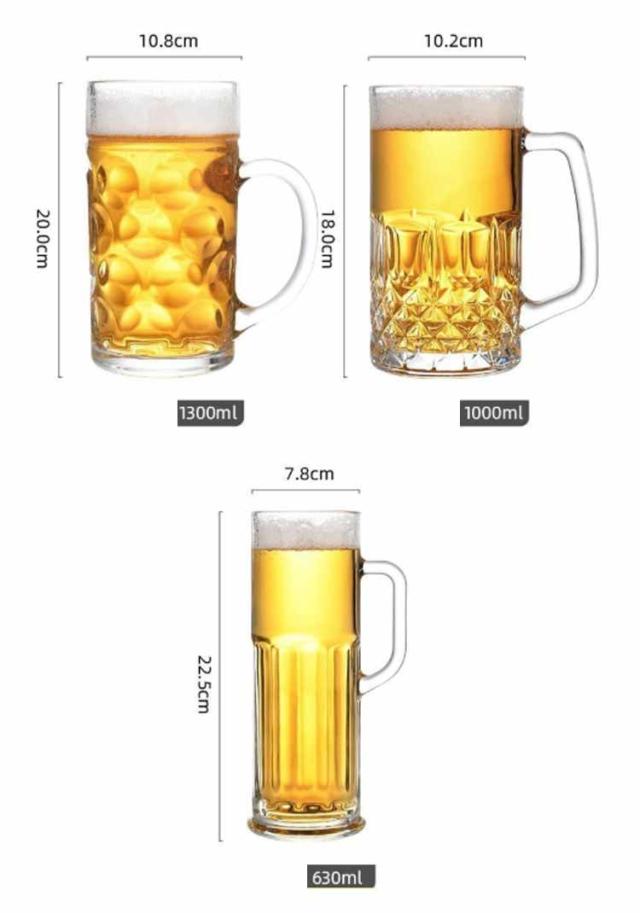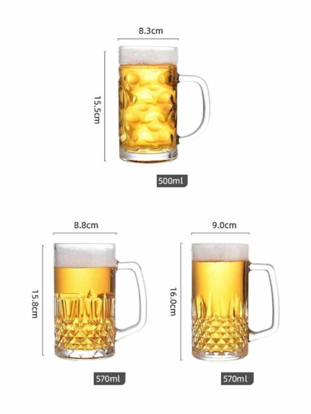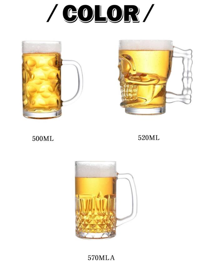昇進祝い 退職祝い 開業祝い 男性 500ML 1300ML 還暦祝い 女性 内祝い 贈り物 ギフト 2個セット 大容量 来客用 両親 誕生日 プレゼント おしゃれ ビールジョッキ ビアグラス 520ML 570ML 630ML お中元 持ち手つき 上品 クリア ビアグラス 飲食店 家庭用 業務用 お酒