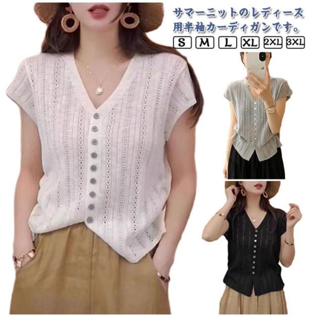 送料無料 夏 半袖 レディース 涼しい 夏 紫外線対策 薄手 半袖カーディガン シアー 春 透かし編み UV ゆったり カーディガン トップス Vネック ニット アウター 前開き 羽織り サマーニット 送料無料 カジュアル きれいめ 通勤 透け感 見痩せ 重ね着 おしゃれ 30代