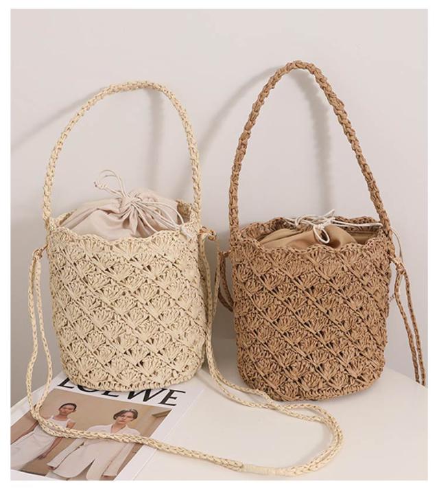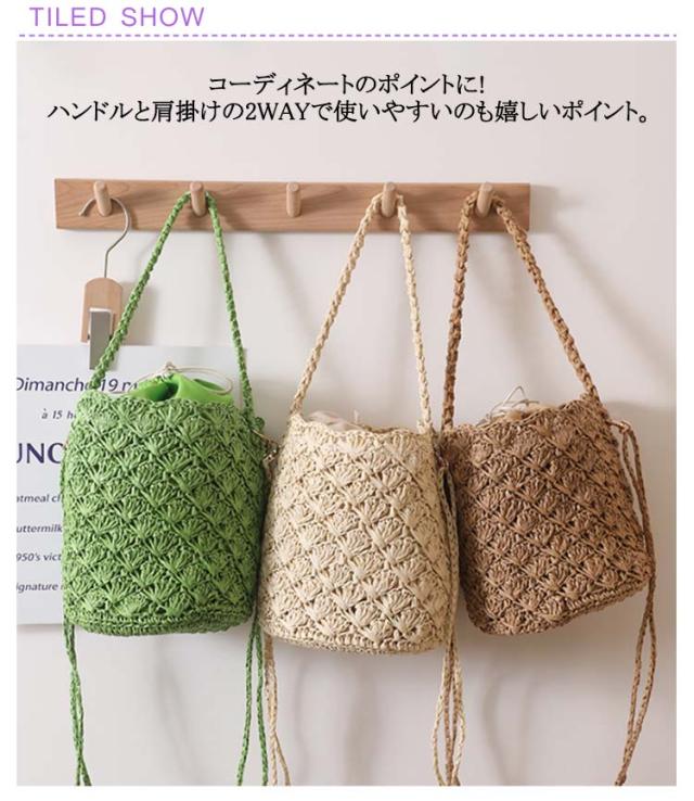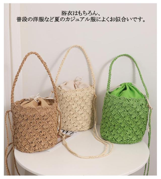 ショルダー かごバッグ バケツ型 浴衣 レディース 肩掛け 鞄 サマーバッグ 籠バッグ かごバッグ カゴバッグ 手提げ 夏バッグ 2way 大人 可愛い 編みバッグ 斜めがけ バッグ ナチュラル 小さめ おしゃれ かわいい シンプル リゾート