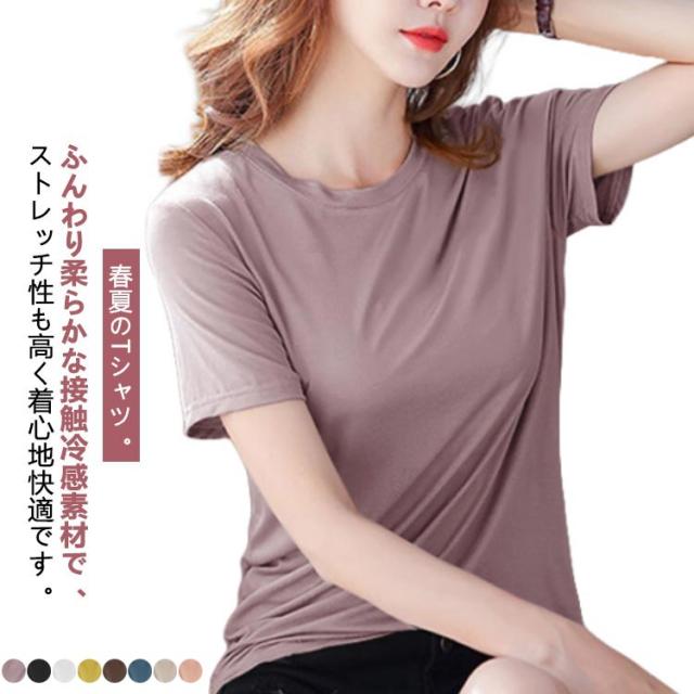 接触冷感 半袖Tシャツ ヨガウェア Tシャツ tシャツ 無地 肌触りいい 送料無料 レディース 吸汗 カットソー UVカット ストレッチ 速乾 スポーツウェア トップス 送料無料 シンプル カジュアル おしゃれ 薄手 柔らかい 体型カバー 春夏 春 夏 秋