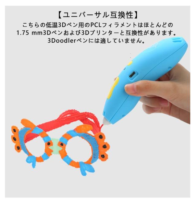 | 3Dペン専用フィラメント 低温PCL/高温PLA 5M×10色セット 【豊かな10色・各色5m】 想像力を高め子供も大人も楽しめる低温3Dペン用のPCLフィラメントです。10色の人気カラーがあり、作りたい作品の図案をガラスやシリコンの下にひいてなぞるだけでオリジナルアクセサリーやフィギュアパーツも作成可能です。 【自然環境に優しい素材】 高品質PCLフィラメントは毒性がなく環境に優しく、煙も発生しません。ABSやPLAのフィラメントよりも低温で使えるので、やけどの心配が無く、安全です。 【優しく低温で溶かしながら工作!】 危険がない安心・安全なキッズ向けシリーズ!低温溶け特性のPCL材料を使用、優しく低温で溶かしながら子供にも安心して使用できます。 【ユニバーサル互換性】 こちらの低温3Dペン用のPCLフィラメントはほとんどの1.75 mm3Dペンおよび3Dプリンターと互換性があります。3Doodlerペンには適していません。 | |